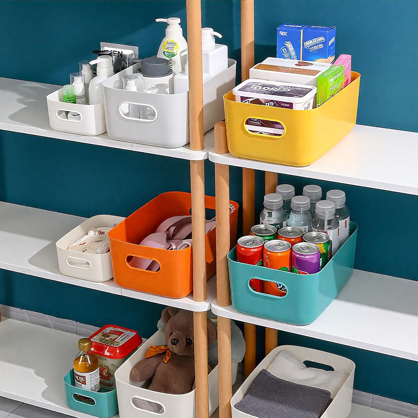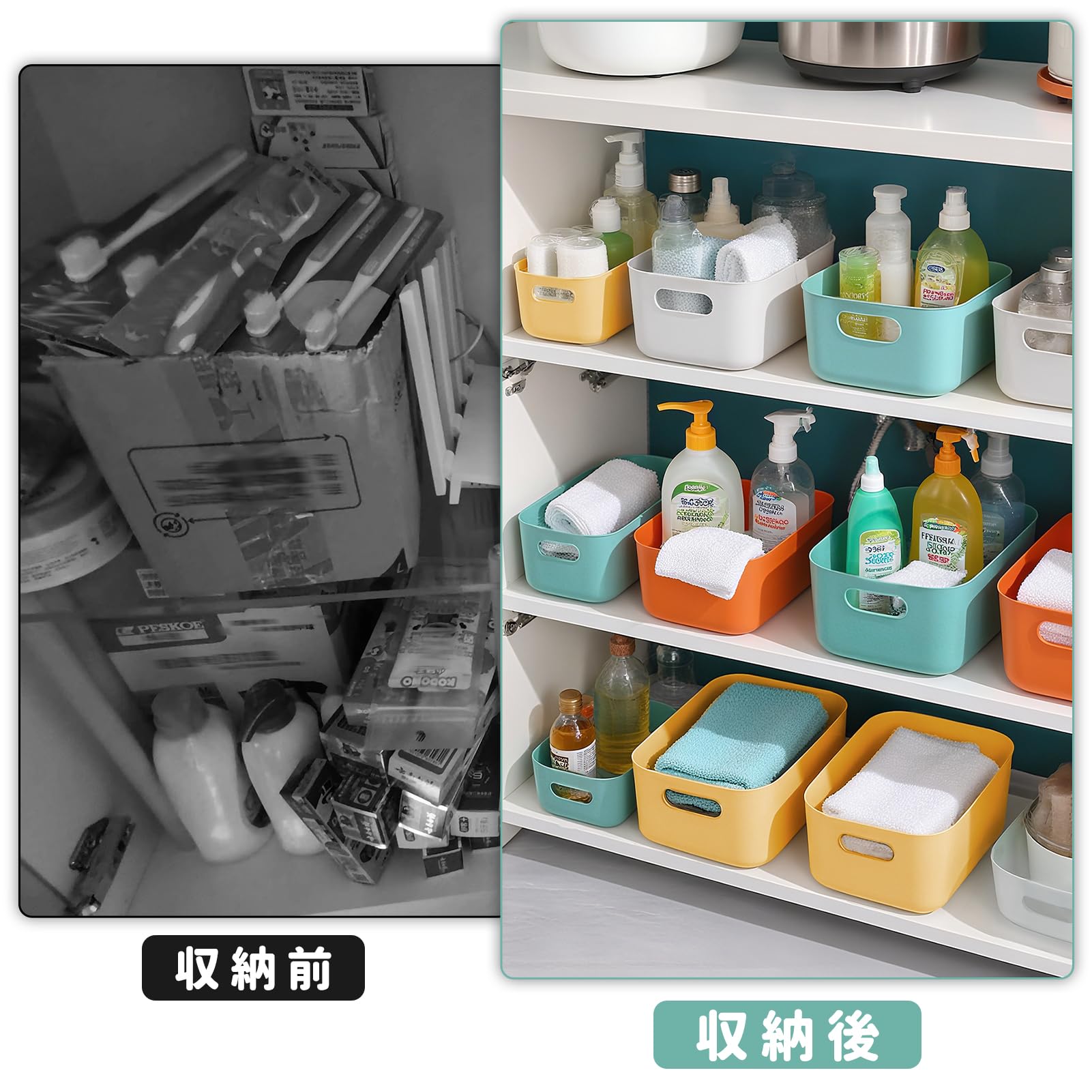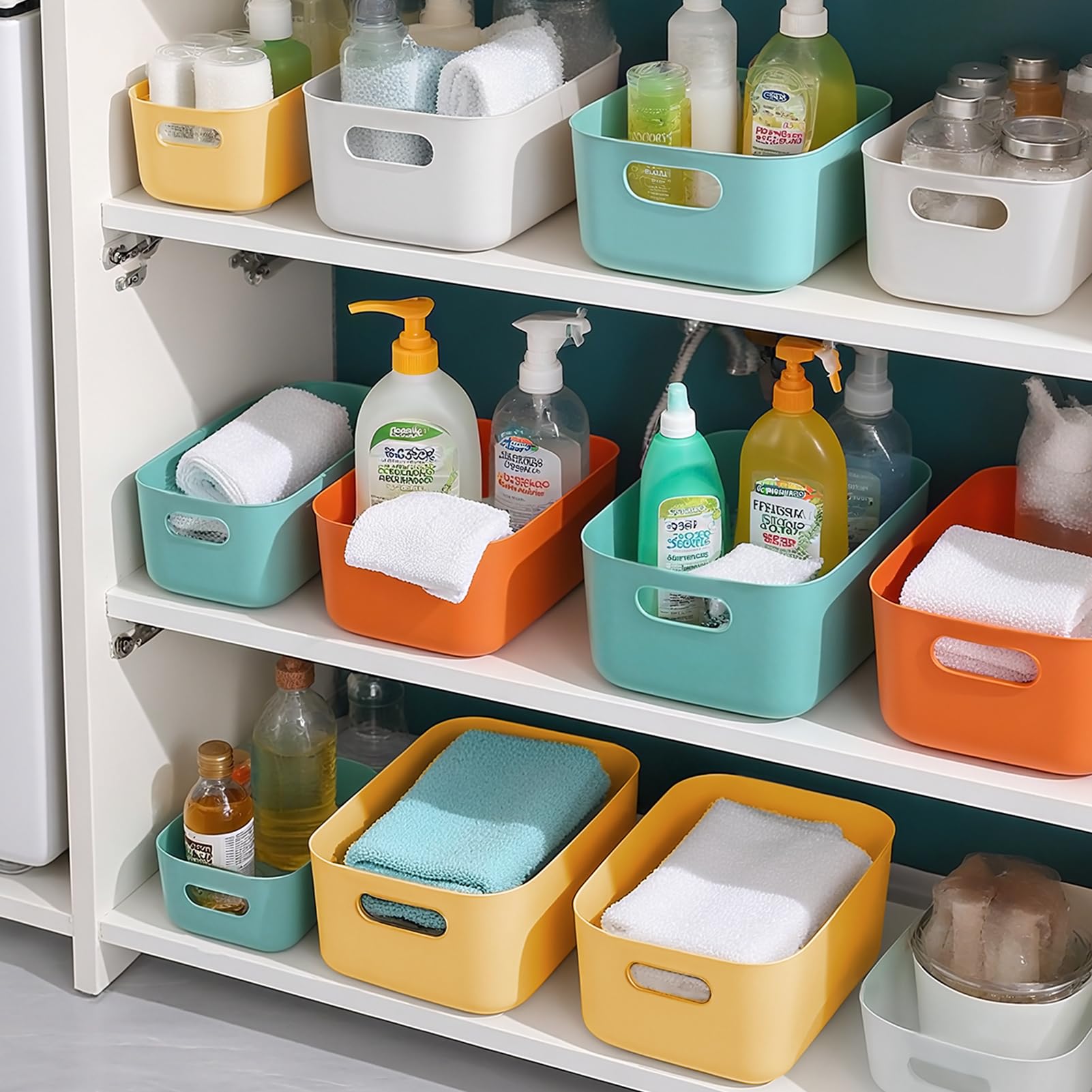 RAIN QUEEN 収納カゴ 収納ボックス 小物入れケース 収納バスケット 8個セット 小物入れ 雑貨整理 卓上収納ケース カラー収納ボックス かご 収納 取っ手付き 小物 整理整頓 収納かご おしゃれ クローゼット 押入れ収納 洗面所/リビング/キッチン収納