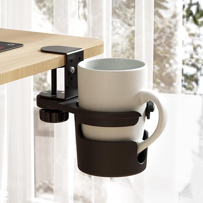 ドリンクホルダー デスク 360度回転収納 スチール製 段階調節 飲み物ホルダー スペース節約 クリップ式 机固定 取り付け簡単 スペース節約 机の下に収納できる (ブラック)