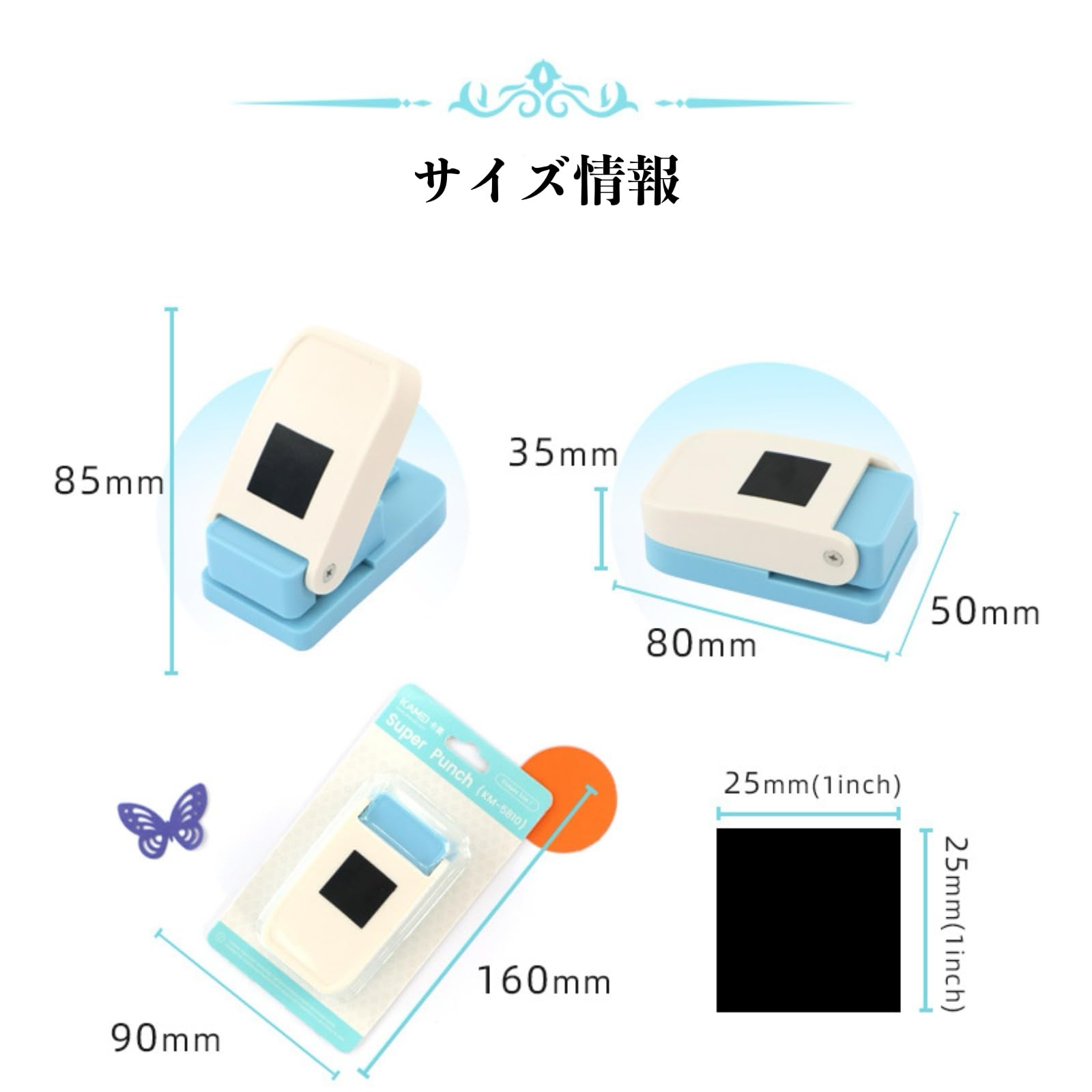 クラフトパンチ 穴あけポンチ,四角 スクエア 切手型 2点セット 1つ穴 ペーパーパンチャー 25mm ハンドメイド diy用 操作簡単 (四角)