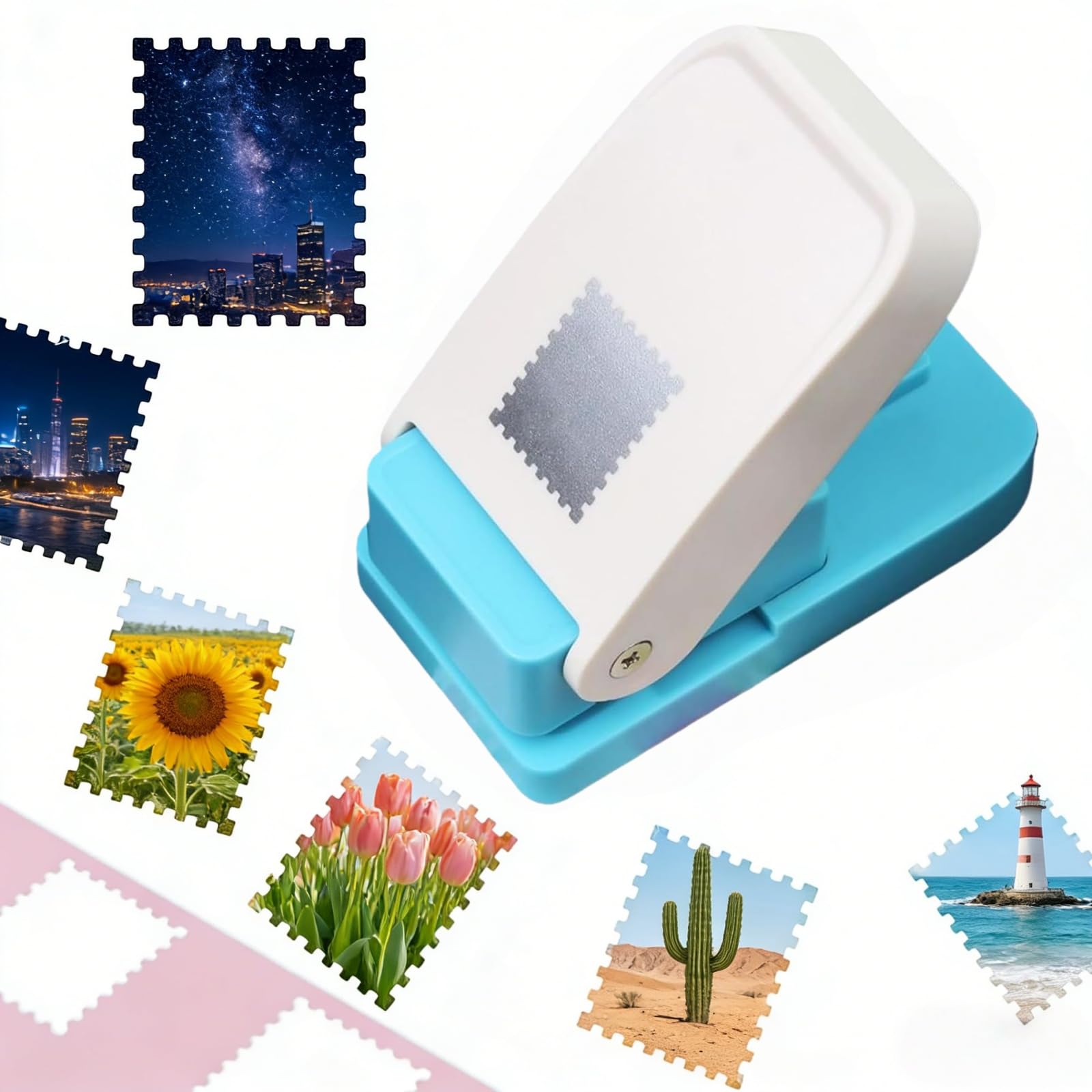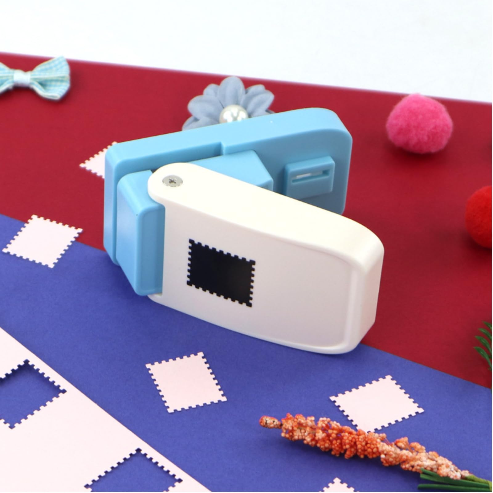 クラフトパンチ 切手 長方形 穴あけパンチ 約3.2×3.8cm パンチ DIY 郵便 切手型 ペーパークラフト エンボスパンチ 子どもも使える 省力レバー式 軽い力で簡単操作 封筒 収納便利 押しやすい 型抜き クラフト・スクラップブッキング・カード作り用 切手風