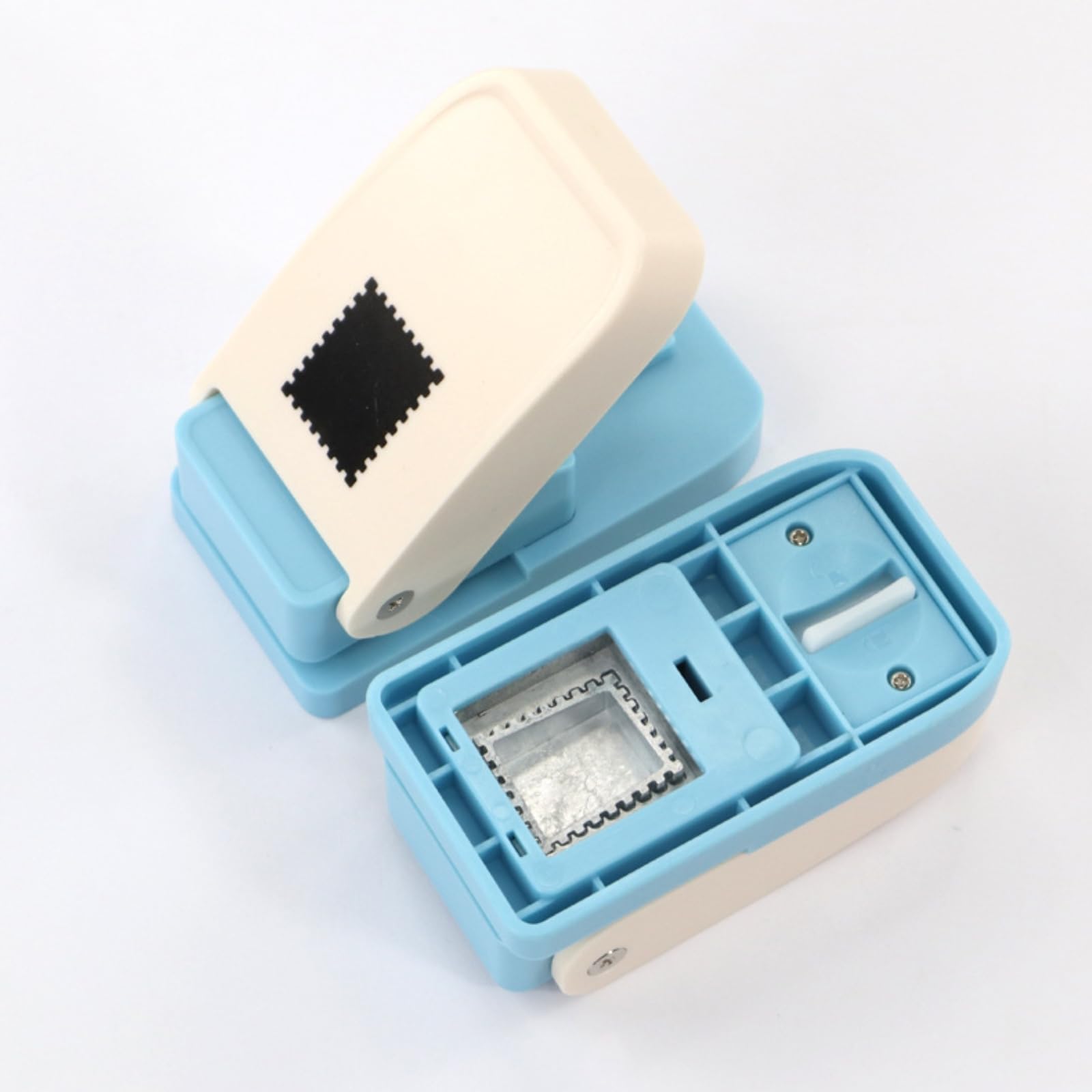 クラフトパンチ 穴あけポンチ,四角 スクエア 切手型 2点セット 1つ穴 ペーパーパンチャー 25mm ハンドメイド diy用 操作簡単 (切手)