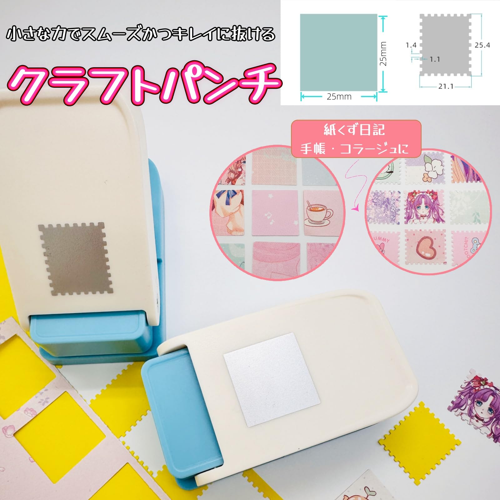 LOL-FUN 【2025新開発】クラフトパンチ 切手 パンチ 穴あけパンチ ペーパーカッター ペーパークラフトパンチャー 【スタンプエッジ 切手型】 子供用 単語帳作り ハンドメイド ギフトカード スクラップブック DIY 学校 幼稚園 多目的 - スクエアスタンプ