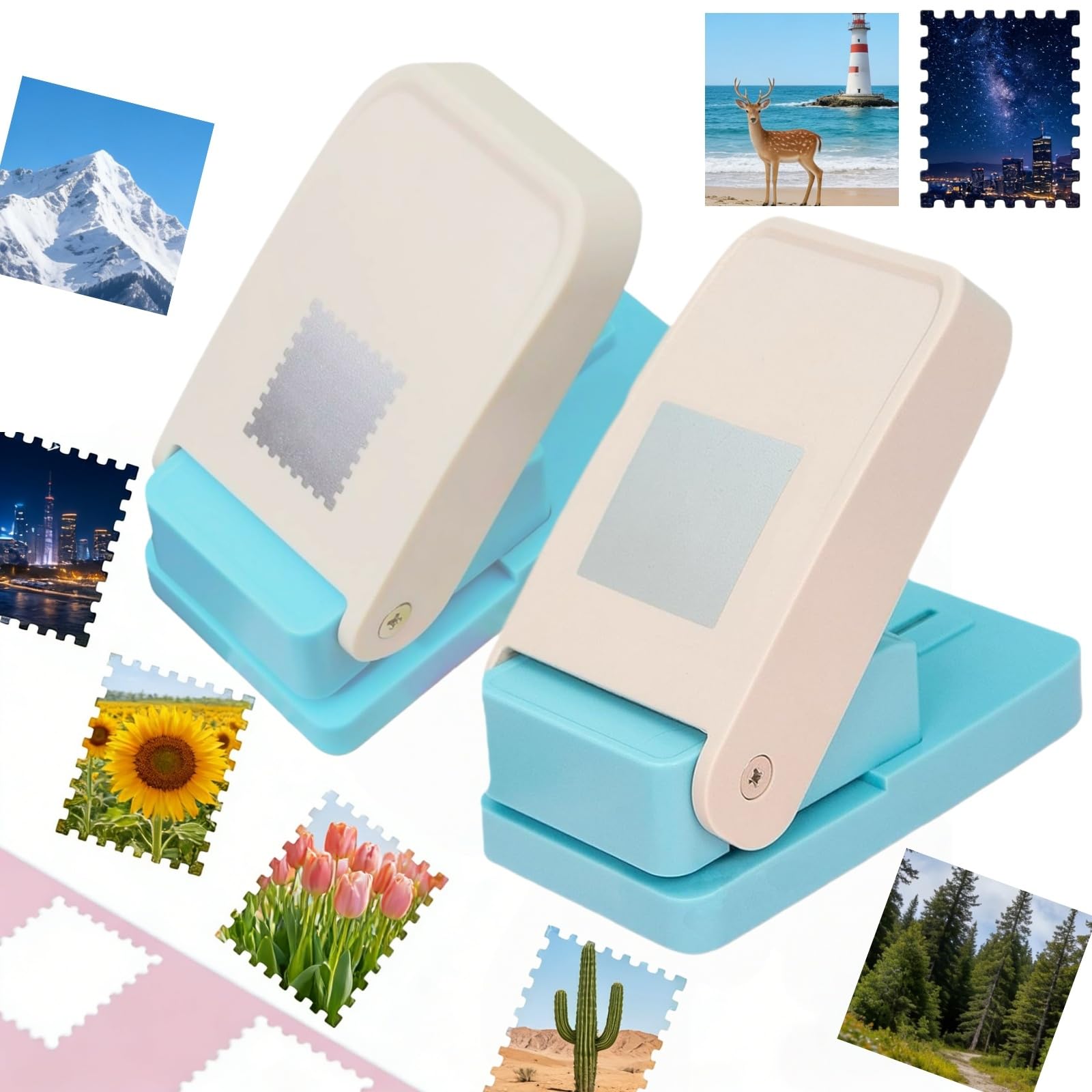 LOL-FUN 【2025新登場】クラフトパンチ 穴あけパンチ ペーパーカッター ペーパークラフトパンチャー 【スタンプエッジ 切手型】子供用 ペーパークラフト 紙用パンチ ハンドメイド ギフトカード スクラップブック DIY 学校 幼稚園 多目的