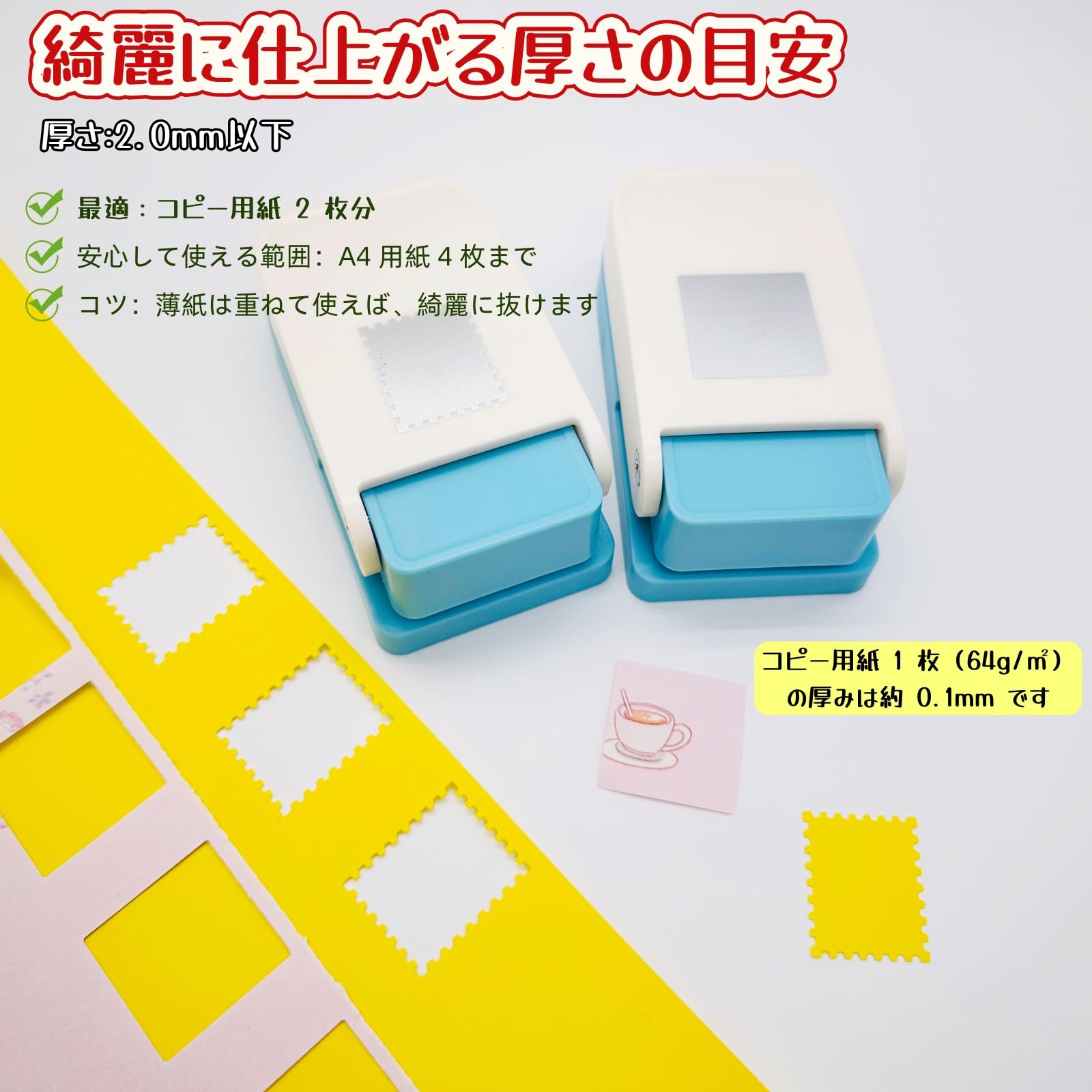 クラフトパンチ 穴あけポンチ,四角 スクエア 切手型 2点セット 1つ穴 ペーパーパンチャー 25mm ハンドメイド diy用 操作簡単 (切手)