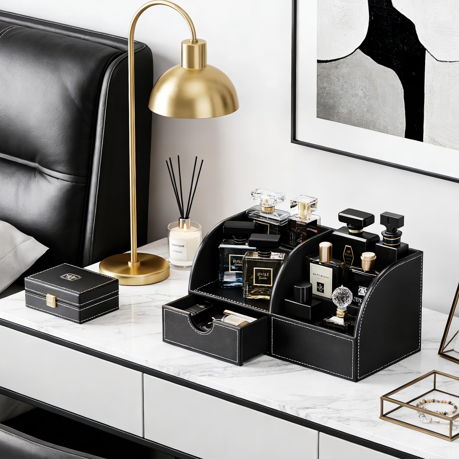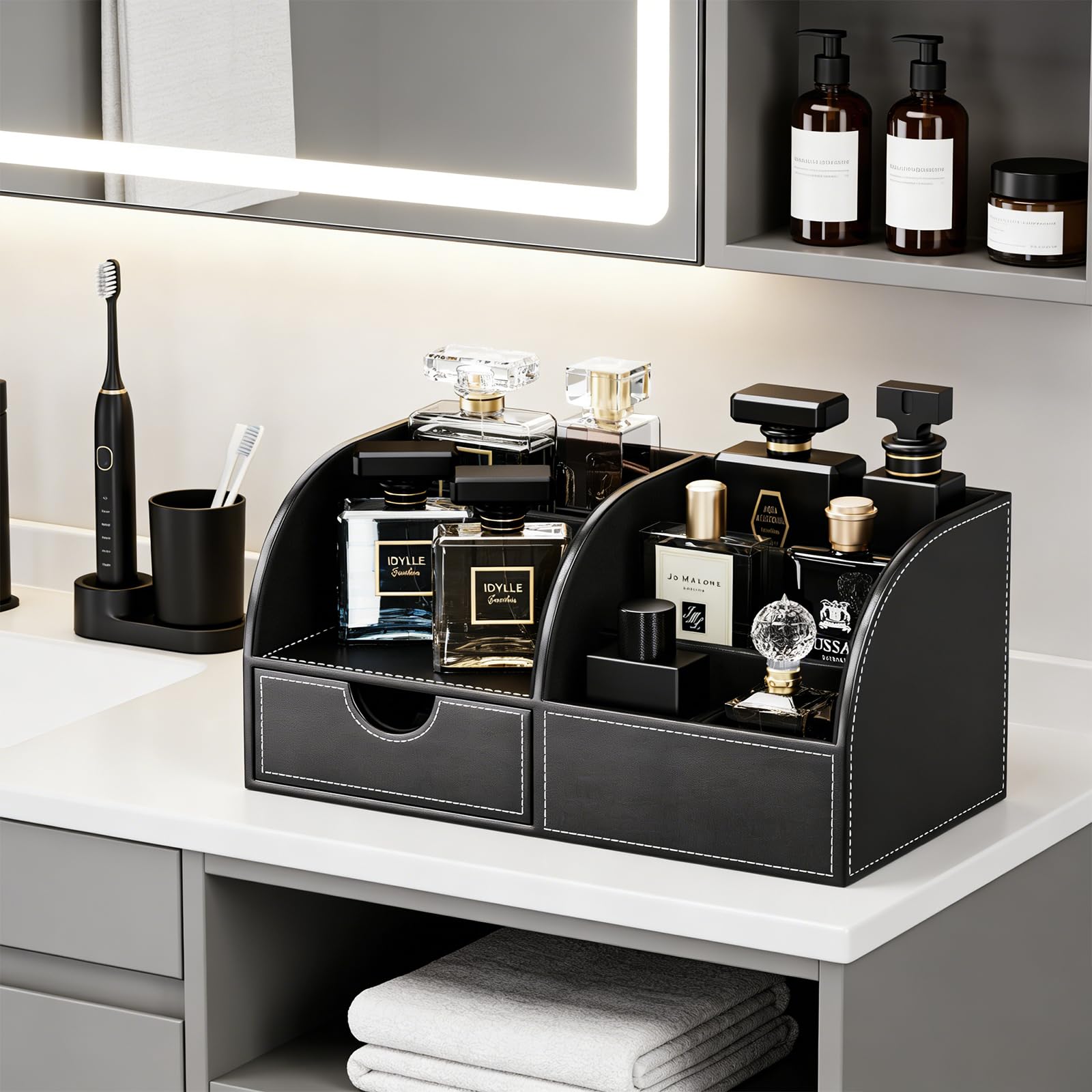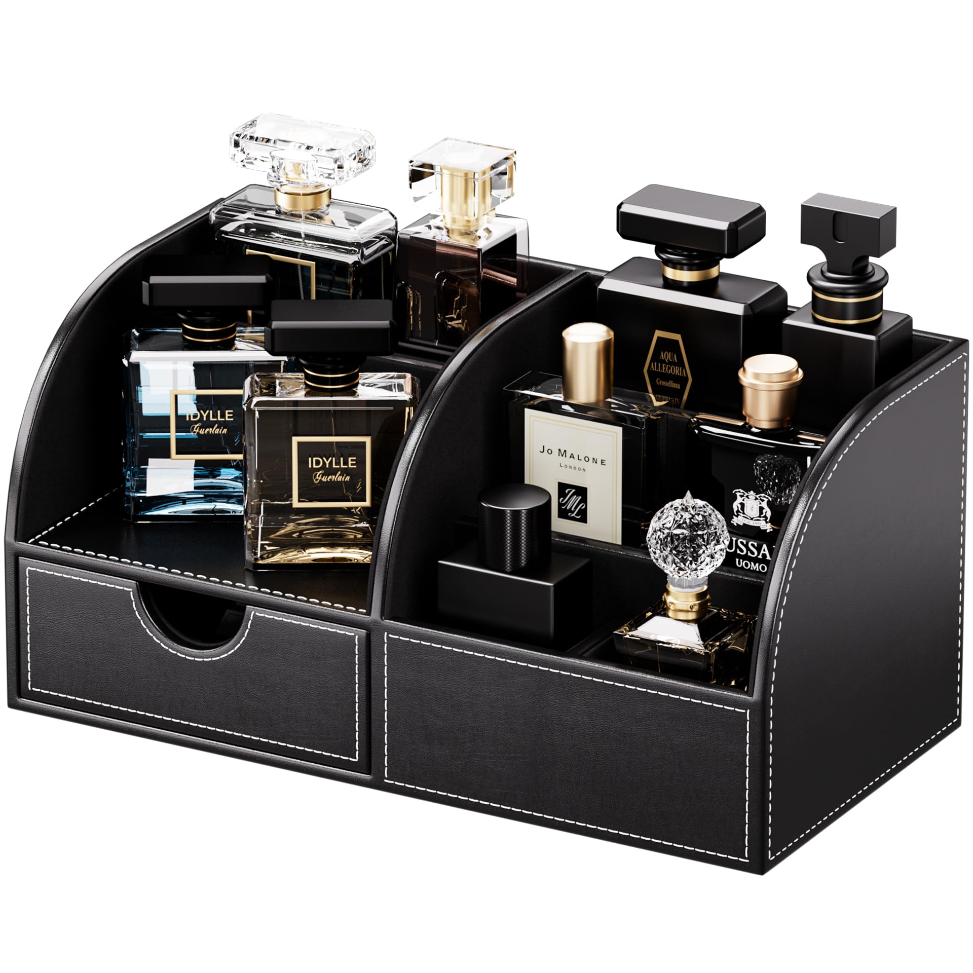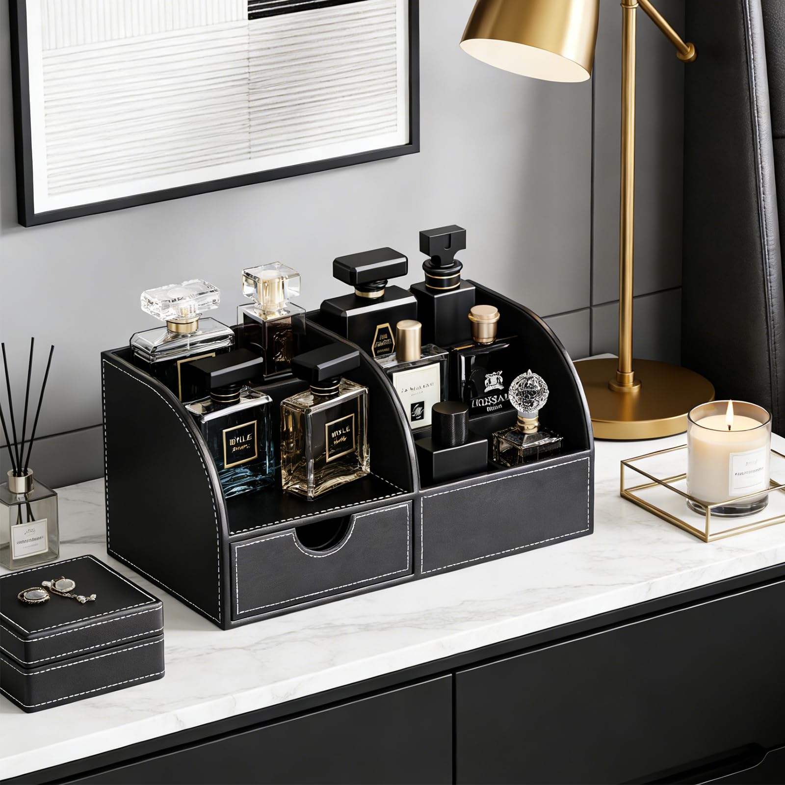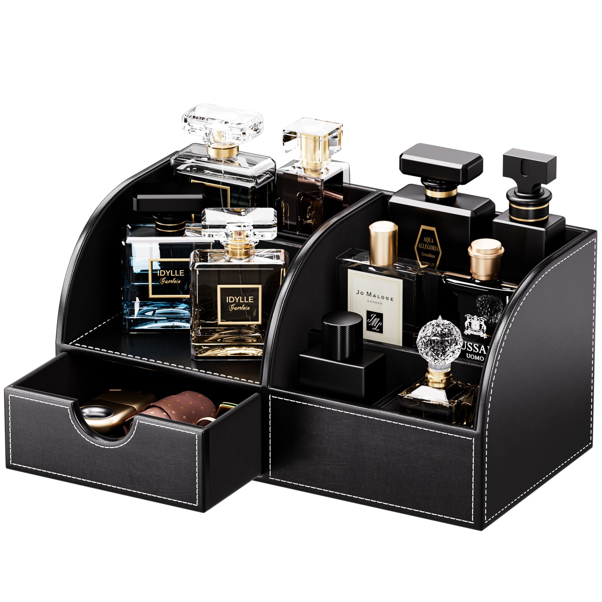 KINGFOM コロンオーガナイザー 香水収納 おしゃれな香水棚 高級PUレザー メンズ香水ケース 香水置き 香水 収納ボックス 多機能コロンスタンド カミソリ・腕時計・アクセサリー整理