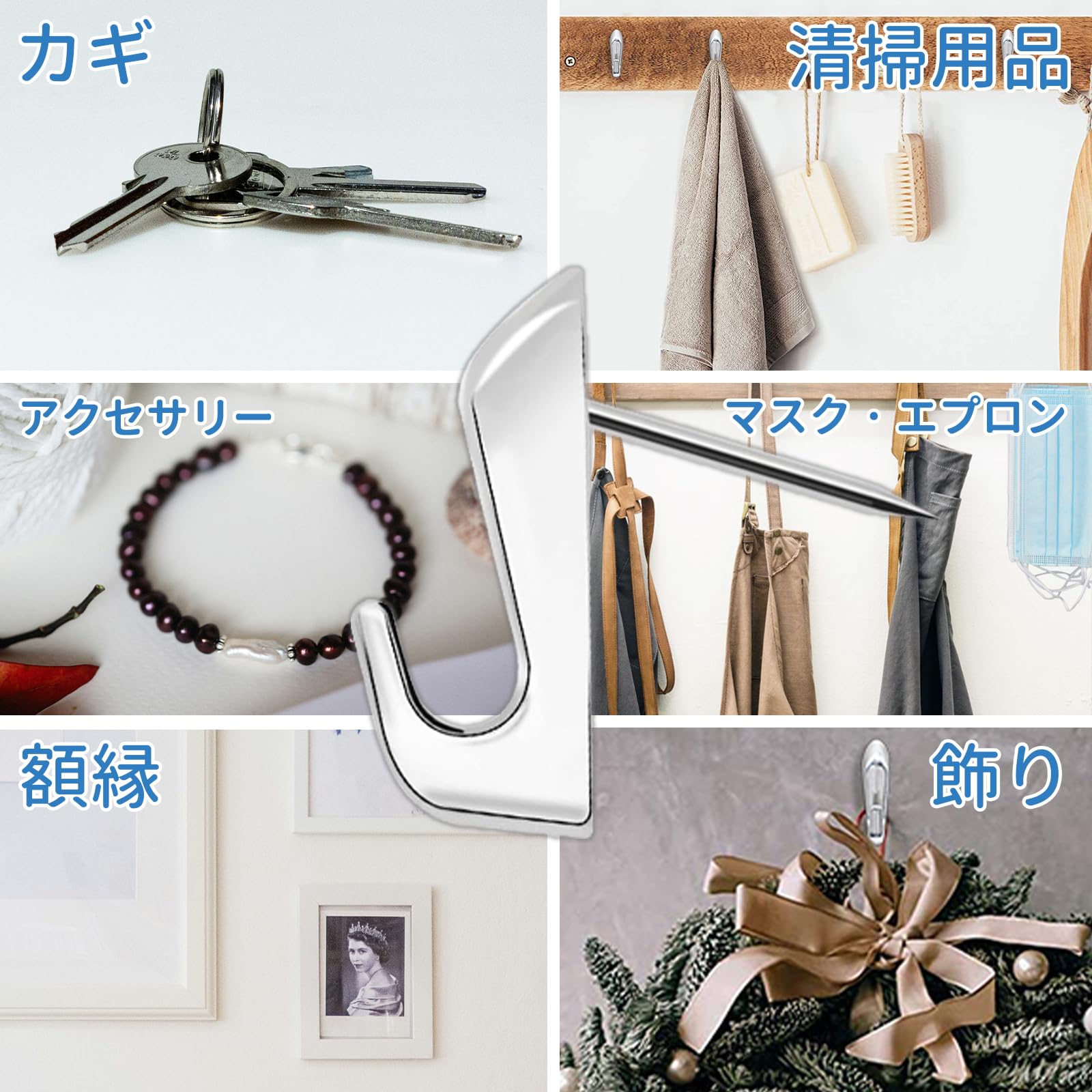 タオル掛け6 個壁掛けフック304 ステンレス スチール ウォールフックタオルハンガー帽子掛けコートフック 玄関 洗面所 バスルーム キッチン オフィストイレガレージ用, ネジ取付 (01)