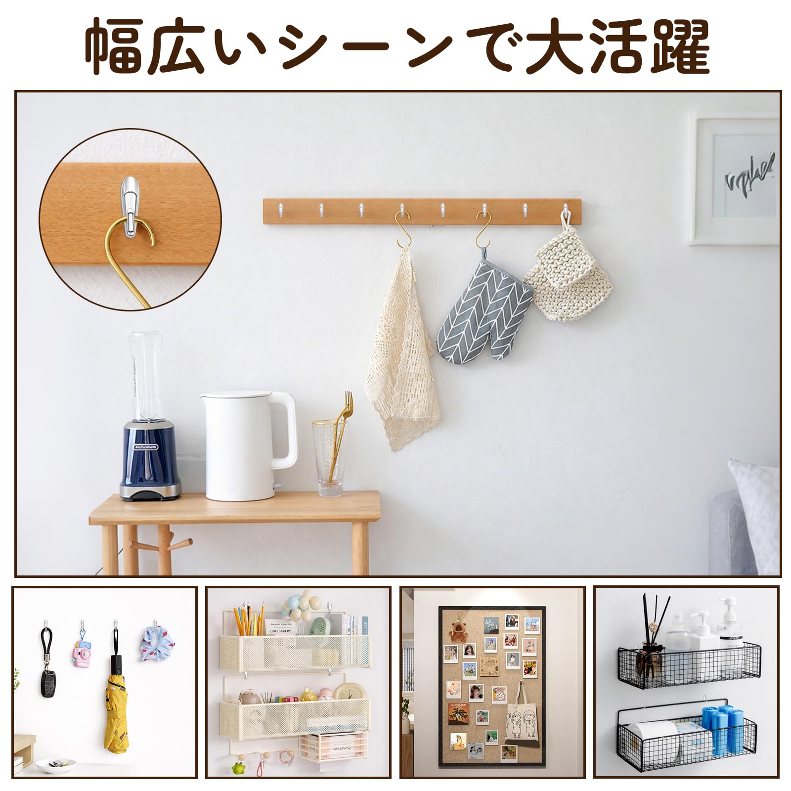 モップホルダー ほうき ハンガー 壁掛け フック モップ ホルダー 収納 ラック 防水両面テープ 取り付け簡単 (4)