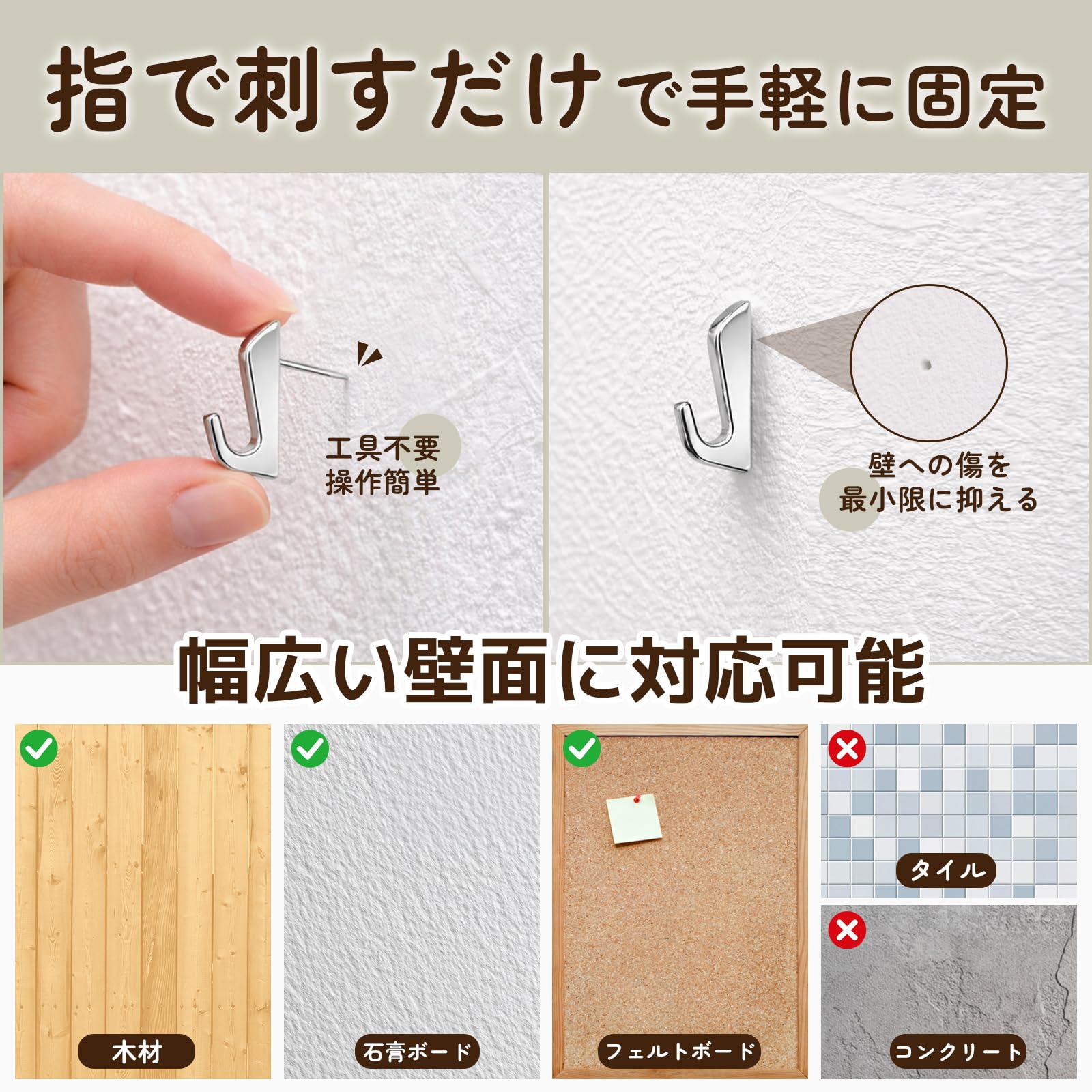 石膏ボード フック 画鋲 フック 石膏ボード ピン 透明 50個セット 壁掛けフック ニンジャピン 壁美人 フック 壁 傷つけない 画鋲 飾り用 額縁 時計 絵画 壁掛け 賃貸 キッチン オフィス 収納ケース付き