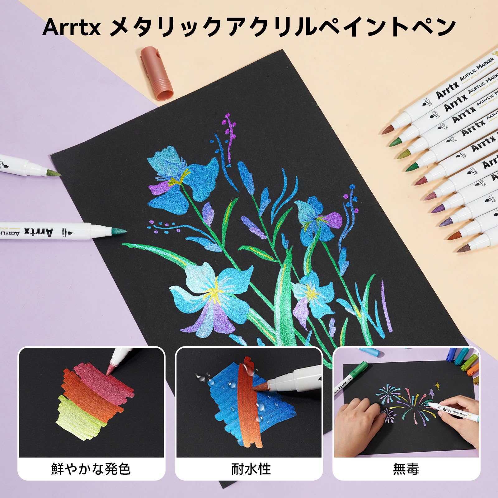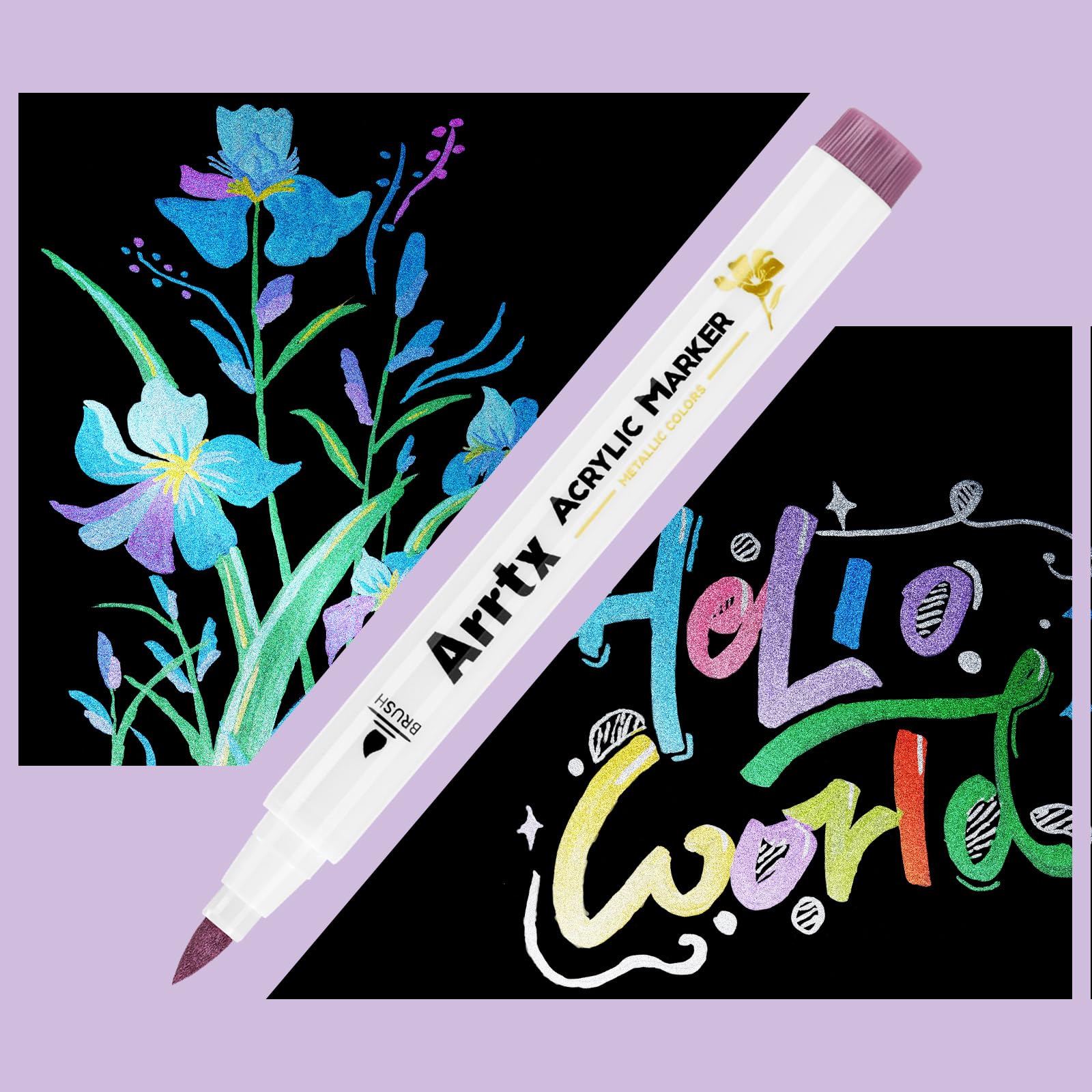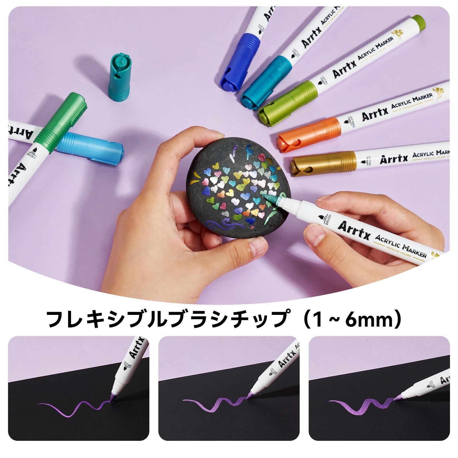 Arrtx メタリックアクリルペイントマーカー 30色 ブラシ先端 耐水性 石・陶器・ガラス・キャンバス対応 DIYクラフト