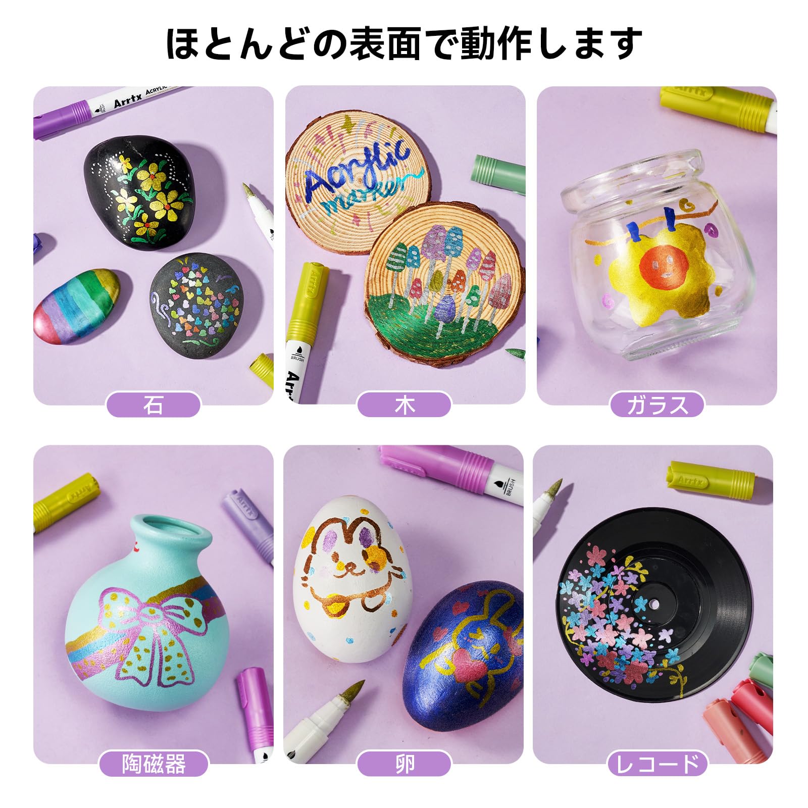 Arrtx アクリルペイントペン、岩絵用58色、予備ブラシチップ、石、ガラス、イースターエッグ、木材、布地の絵用水性ペイントマーカー - 無毒、無臭 - タイプ30A + B