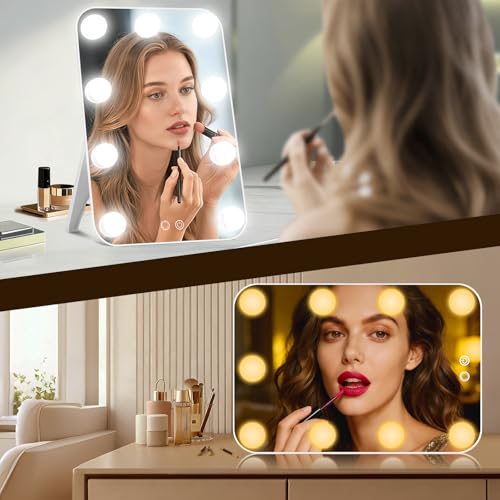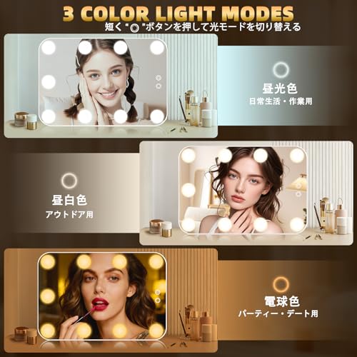 Lasola 化粧鏡 女優ミラー ライト付きミラー 壁掛け/卓上両用 USBポート付き 10倍拡大鏡付き 三色照明モード タッチ式 明るさ無段階調光 給電式 ハリウッドミラー ledメイク 鏡 ライト付き鏡 大きめ鏡 化粧かがみ おしゃれ (50x40cm)
