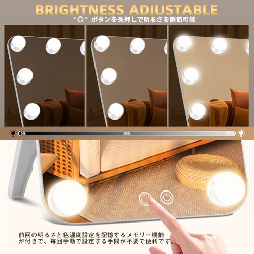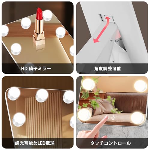 鏡 卓上 ライト付きミラー メイク 3つ光色 明るさ無段階調光 角度は自由に調整 卓上鏡 女優ミラー USB充電式 消し忘れ防止機能 収納便利 旅行用 持ち運びに便利 卓上ミラー 化粧鏡 折りたたみ (ハリウッド)
