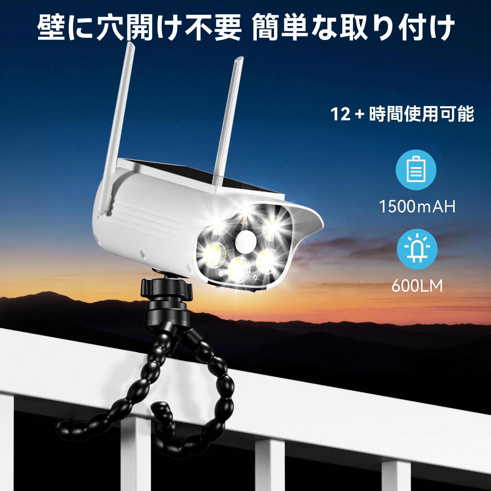 Vividorad 人感センサー ソーラーライト 屋外 IP65防水 昼光色 92LED 1500mAh 【最大12時間連続照明可能】フレキシブル三脚付式 ソーラー 人感センサーライト 360度調整ランプ 3つ知能モード 600ルーメン超高輝度 自動点灯消灯 ベランダ 玄関 駐車場 ガーデン 柵 庭 廊下 地震 津波 停電/防災/台風/雪の日/雨の日対策