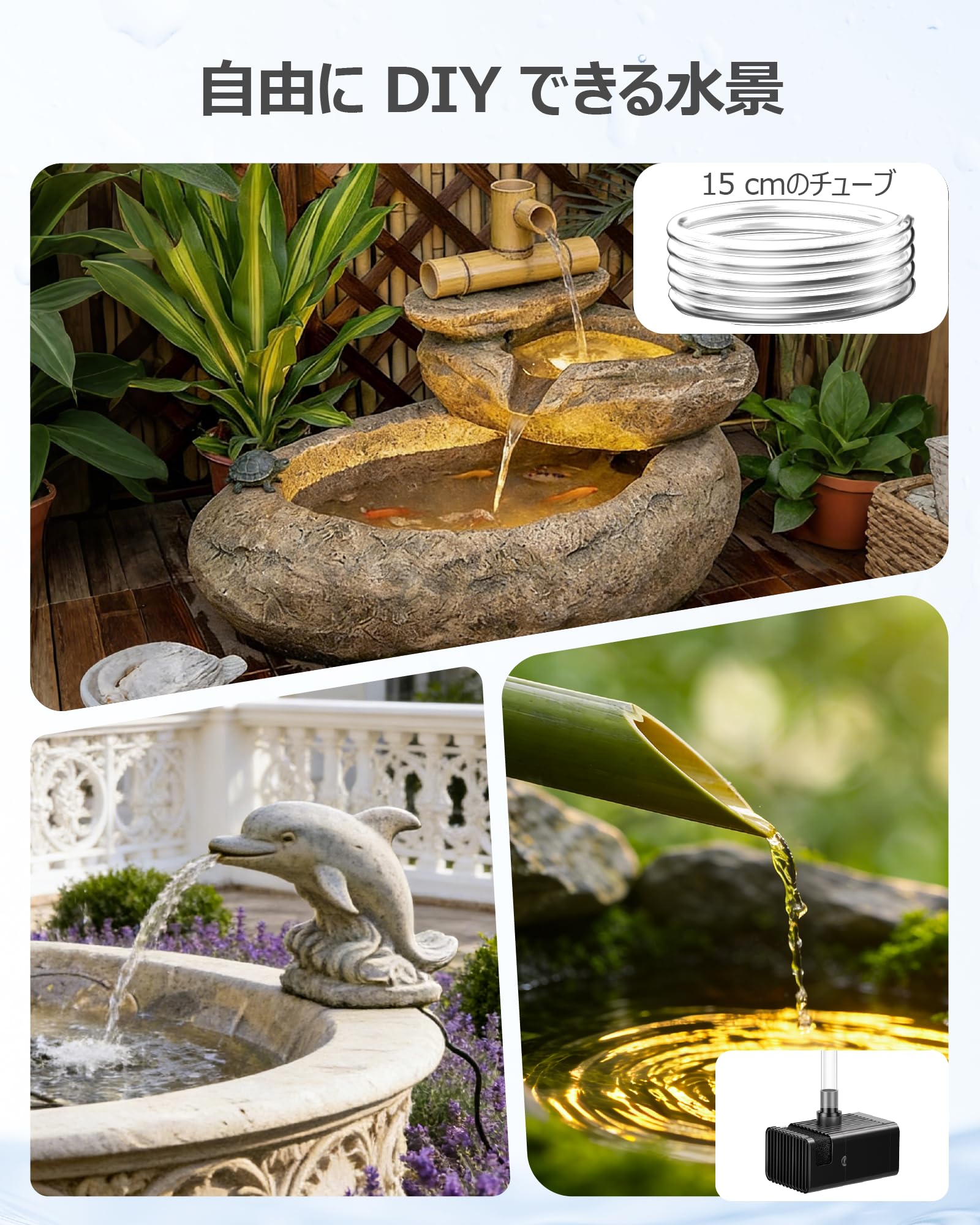 Biling 2.5Wソーラー噴水ポンプ 屋外 太陽光発電式 循環ポンプ 池ポンプ ガーデン用 DIY 水景 バードバス用 ノズル付き 空運転防止 充電不要 ダイレクトドライブ
