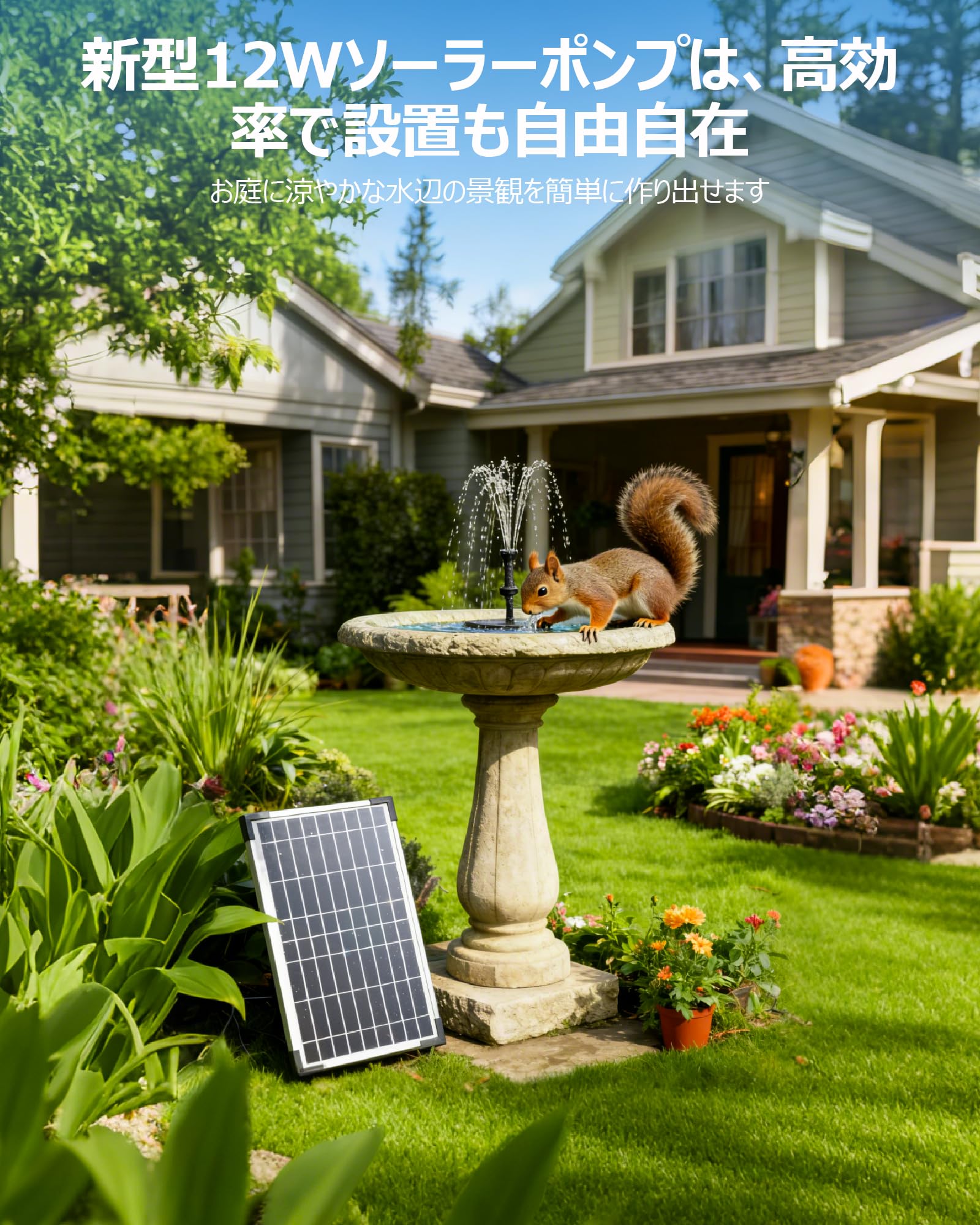 NFESOLAR ソーラーポンプ 屋外 メダカ 噴水 ソーラー 噴水ポンプ ソーラー噴水ポンプ 循環 ガーデンDIY 池ポンプ 12W 充電電池無し 太陽光充電 バード バス用 ガーデン用噴水ポンプ ノズル付き 水循環 2way取り付け 池 プール 庭用 バードバス 庭の装飾 ソーラーパネル 庭の装飾用 ガーデ用(ダイレクトドライブ)