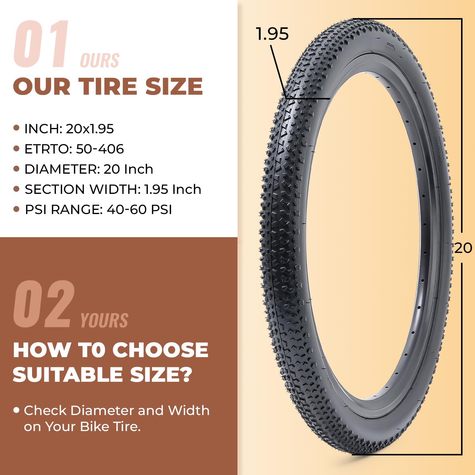 MetersGod 2本,20x1.95 自転車タイヤ,耐久性がある 折りたたみ 20インチ 50-406 20x1.95 マウンテンバイクタイヤ,マウンテンバイク クルージングバイク用のリプレイスメントタイヤ,クリンチャータイプ,MGW029