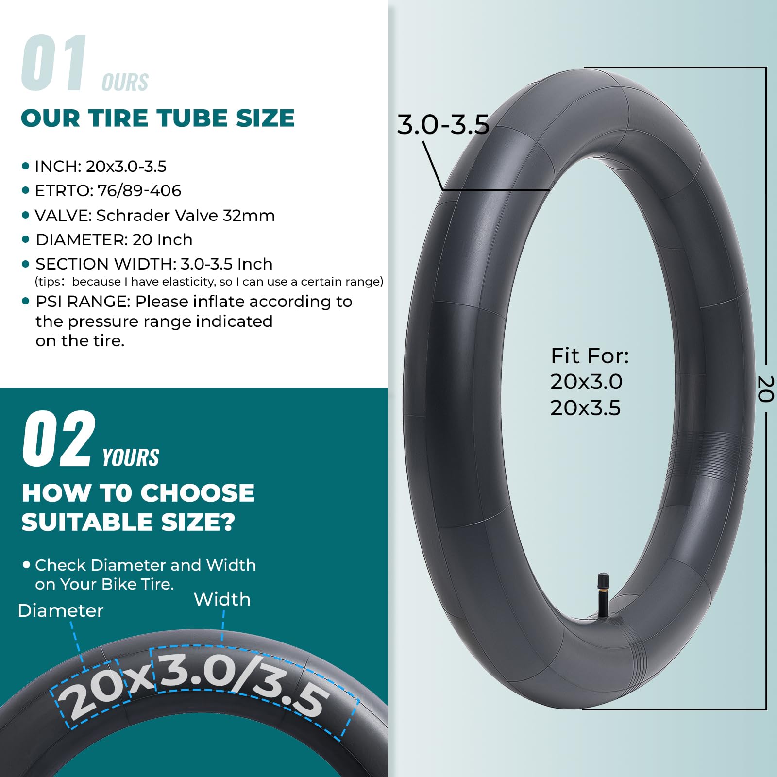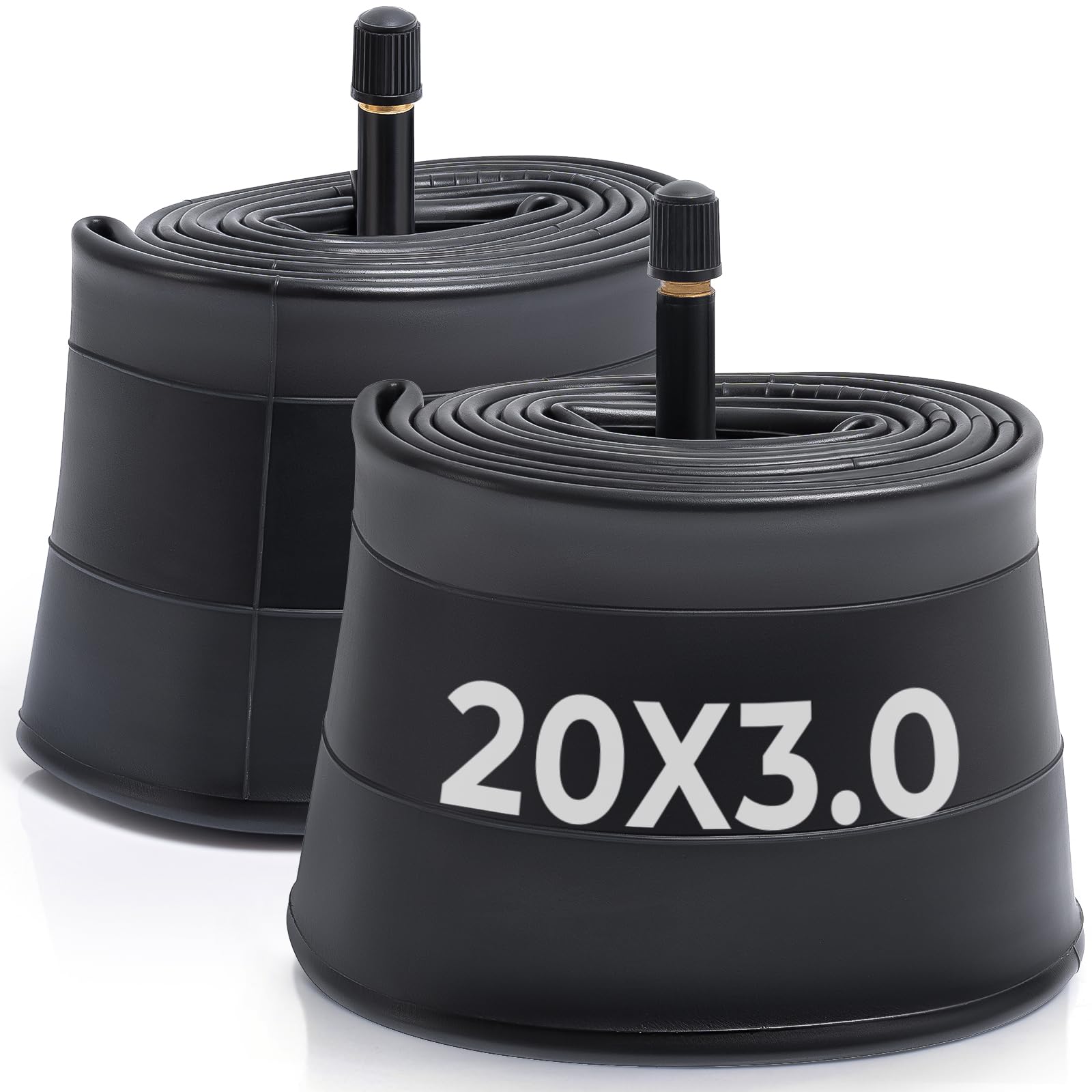 2本 20 x 3.0 ファット タイヤ チューブ 米式バルブ32mm,パンク証明自転車チューブ 20 x 3.0 自転車タイヤ、ブチル ゴム製インナー チューブ電動自転車,マウンテンバイク用