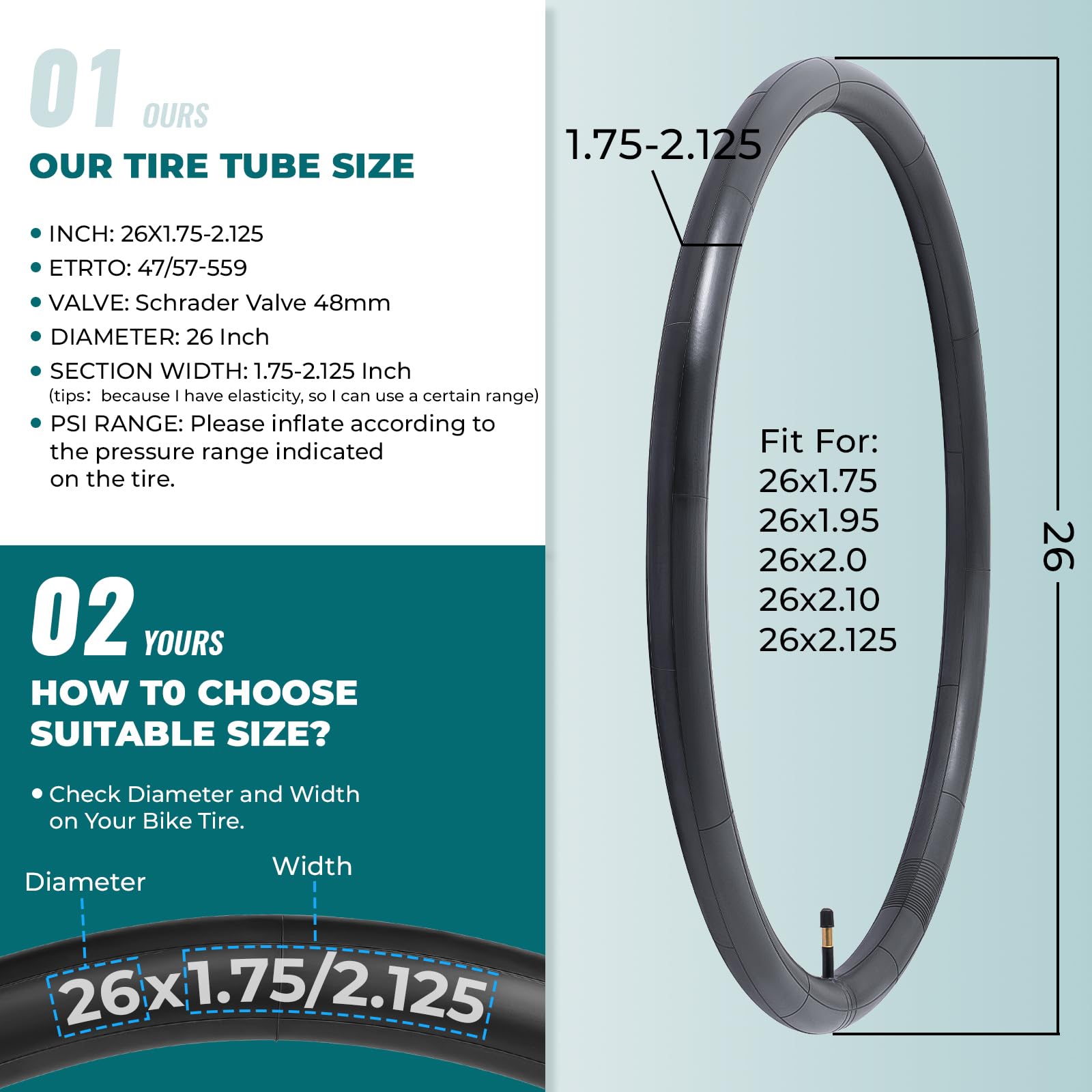2本,26 1.75 チューブ,26 1.95 チューブ,26x1.75/2.125 自転車チューブ,仏式バルブ48mm,チューブ 26 1.75,チューブ 26 1.95,26 2.10 チューブ,26 2.125 チューブ,MTB チューブ 26 1.95,26 1.75 マウンテンバイクチューブ,26 1.95 クロスバイク自転車チューブ,26インチ 自転車チューブ 1.75