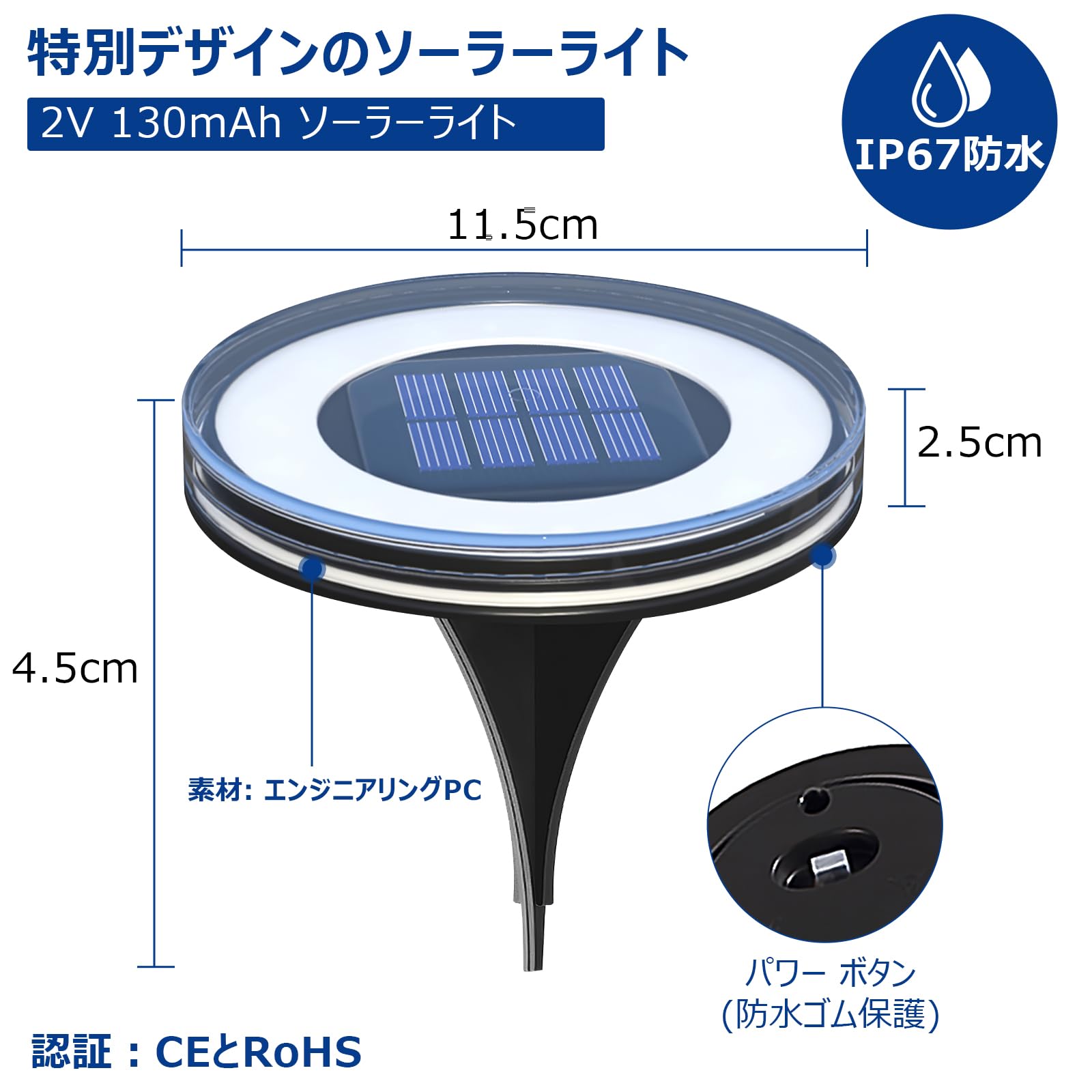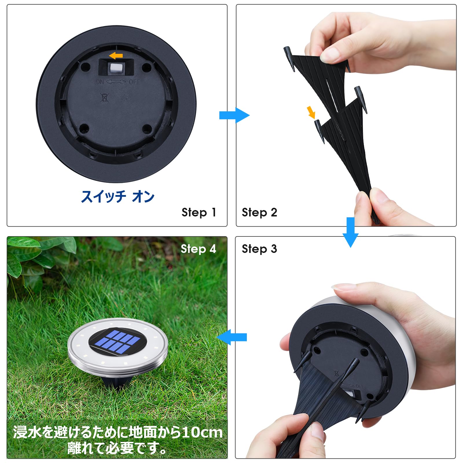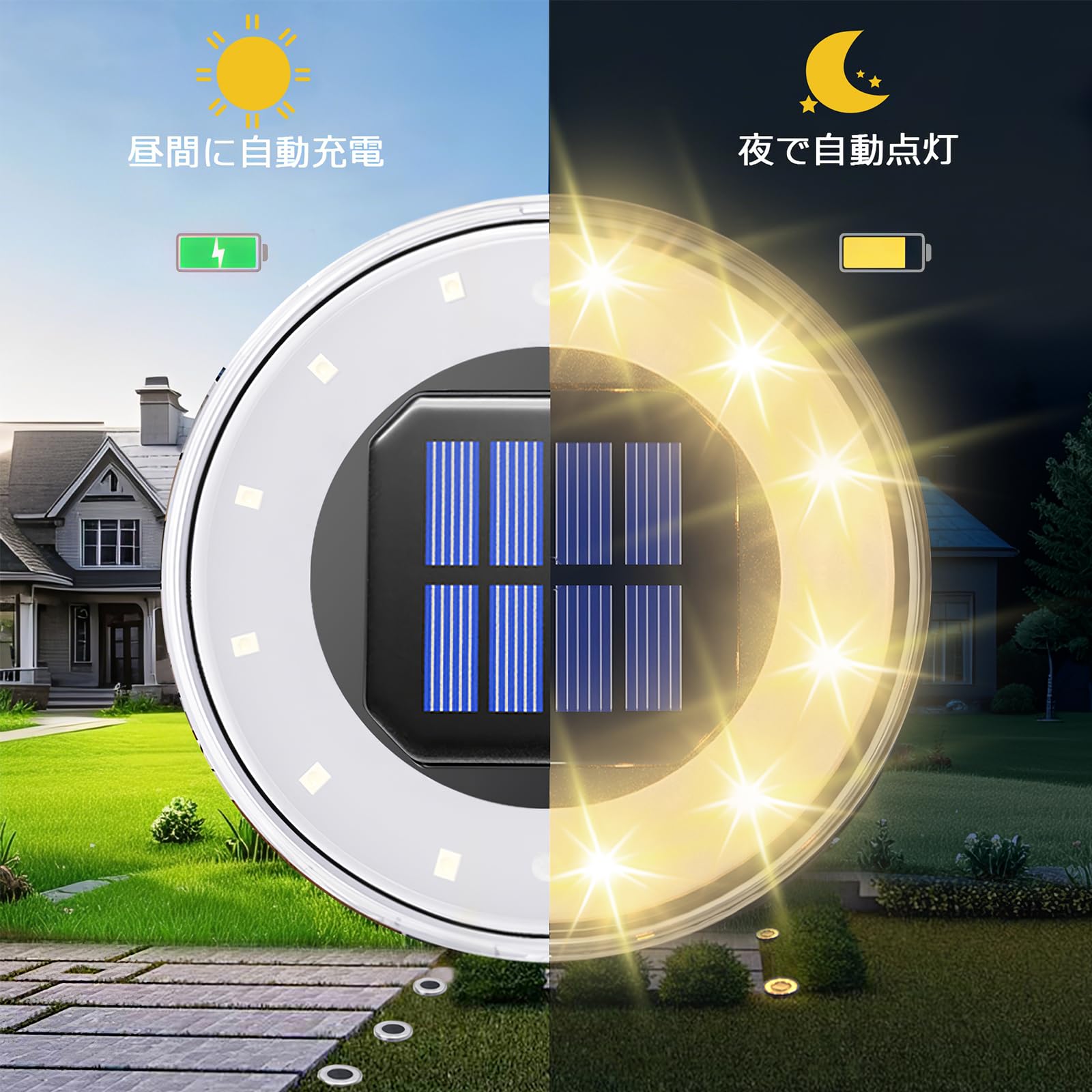 ソーラーライト 屋外 埋め込み式 水陸両用 ガーデンライト 4個セット IP68防水 太陽光パネル充電 防犯対策 光センサー 12LED 高輝度 自動点灯/消灯 玄関先/庭/芝生/車道/歩道 (ホワイト)
