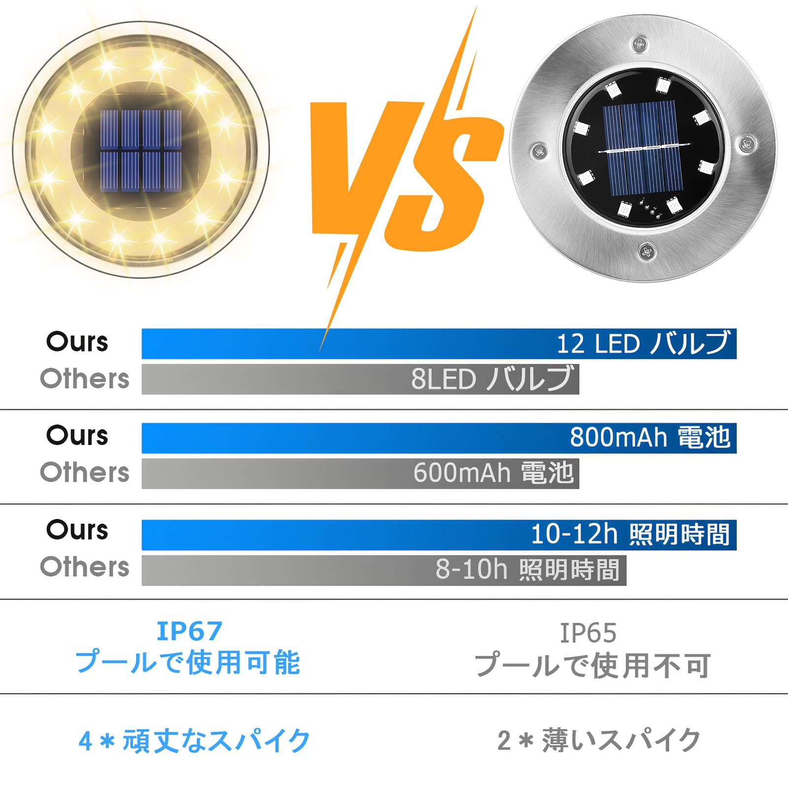 NFESOLARNFESOLAR ガーデンライト ソーラー 屋外 防水 IP68 埋め込み/置き型 高輝度 LED 光センサー自動点灯 太陽光充電 180kg 耐荷重 防犯防災 庭 玄関 駐車場 歩道 日陰でも使える(4個セット電球色)