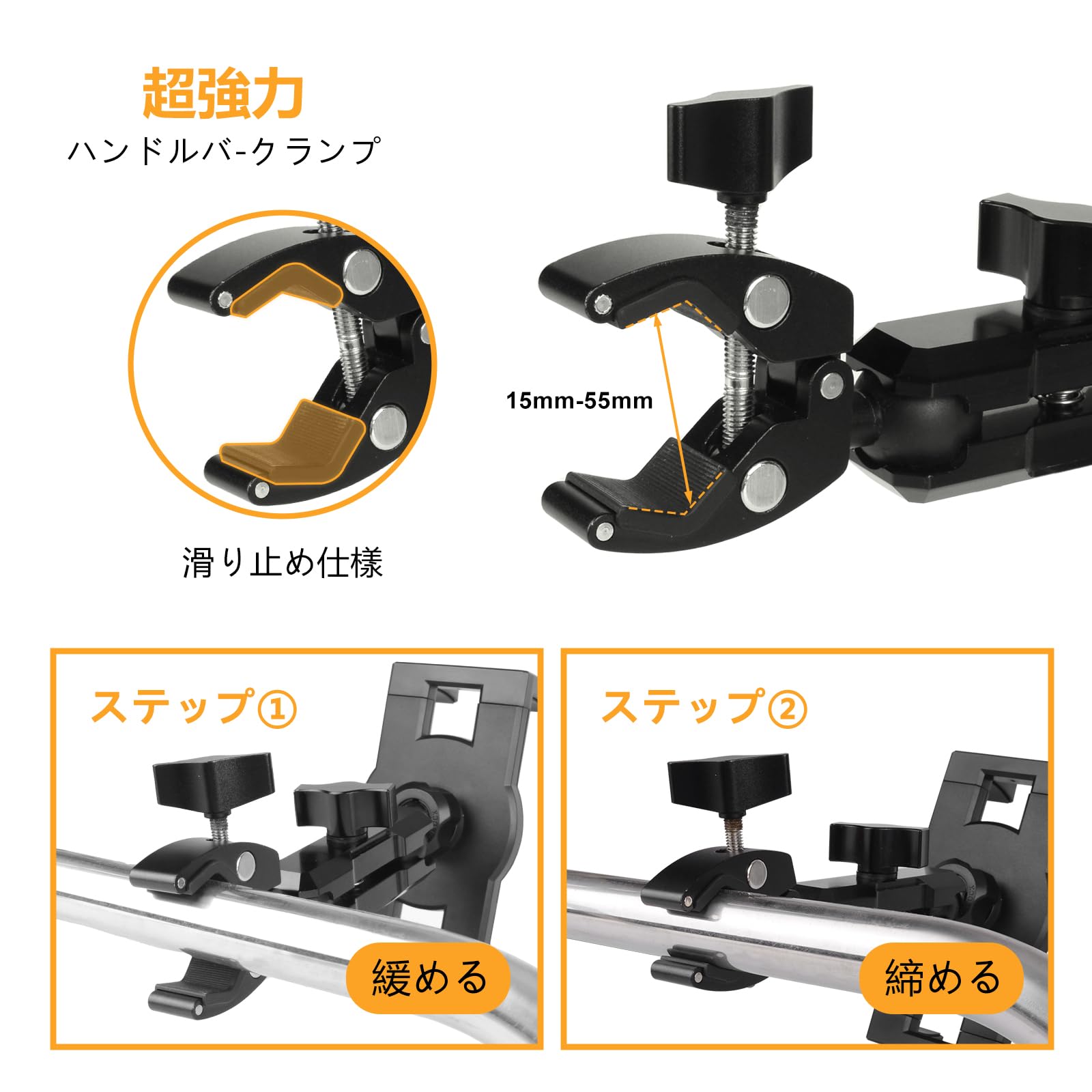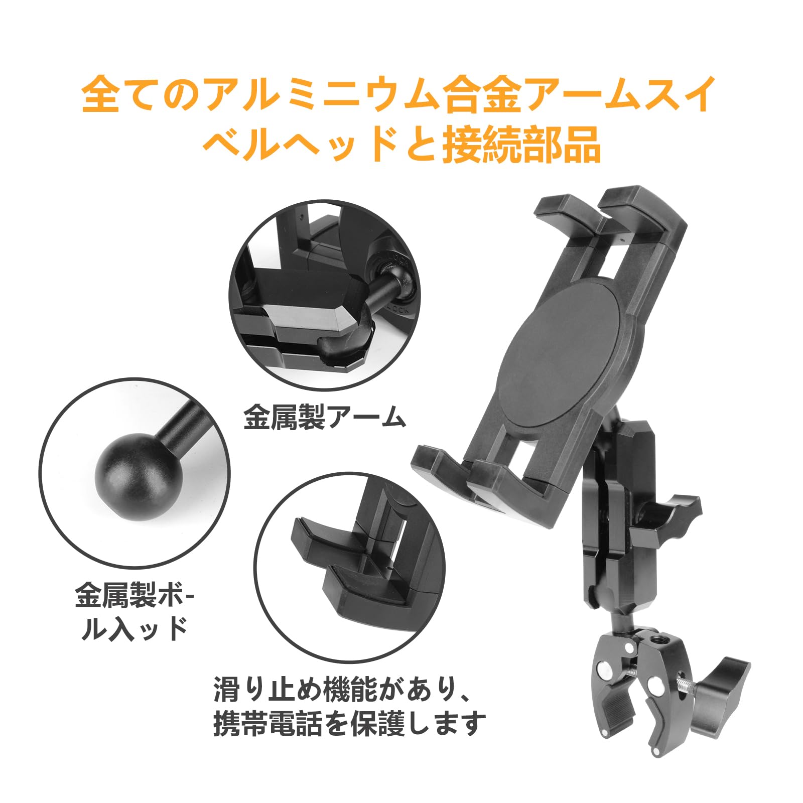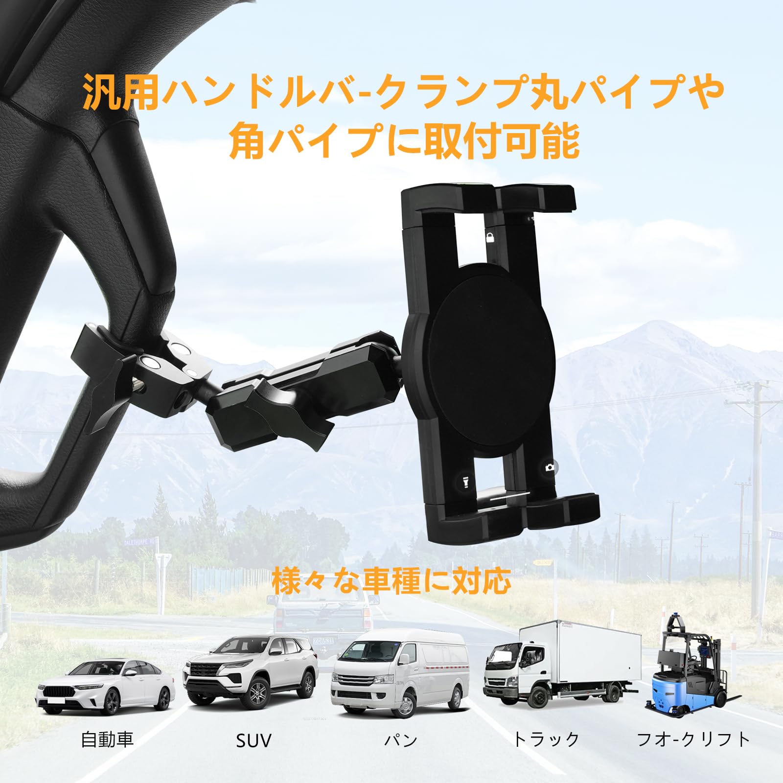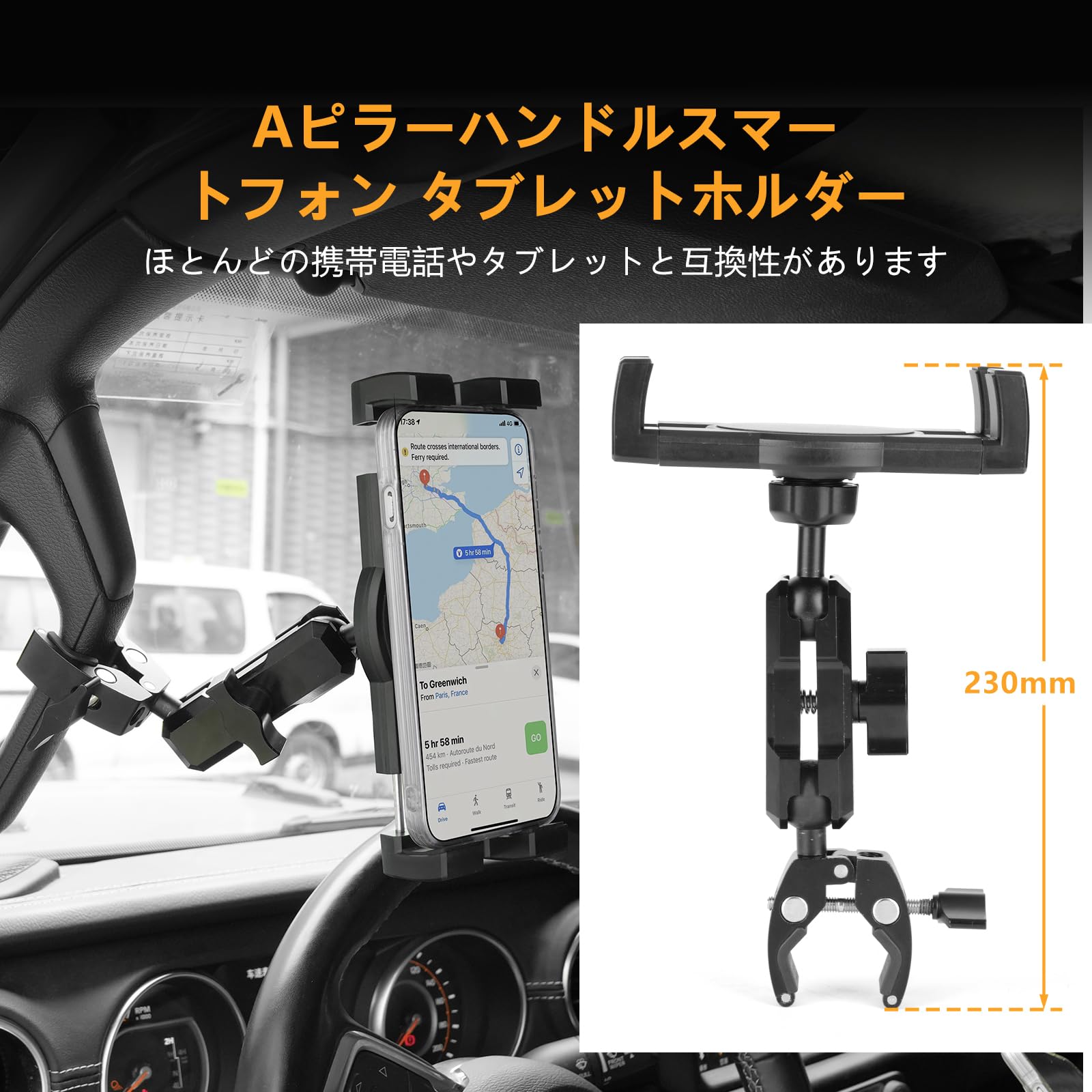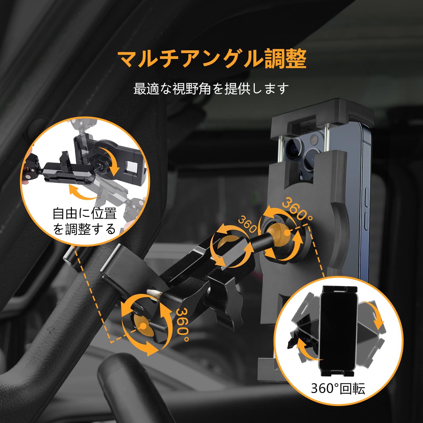 車用スマホ Aピラーホルダー 補助グリップ スマホホルダー トラックハンドルホルダー トヨタ ハイエース 200系に適用 スマホ・タブレット対応 360度回転 取付簡単 金属アーム 滑り止め