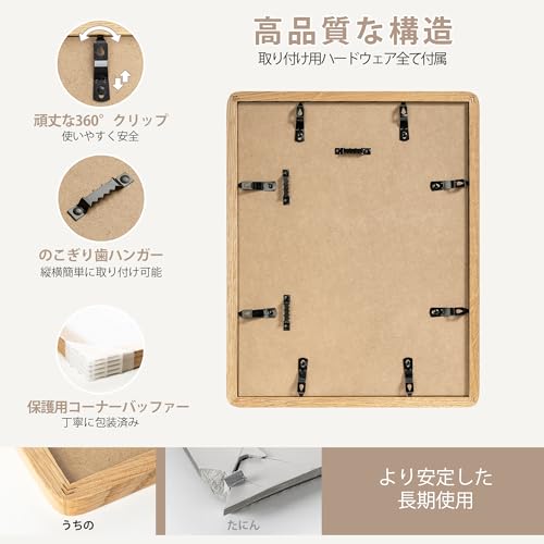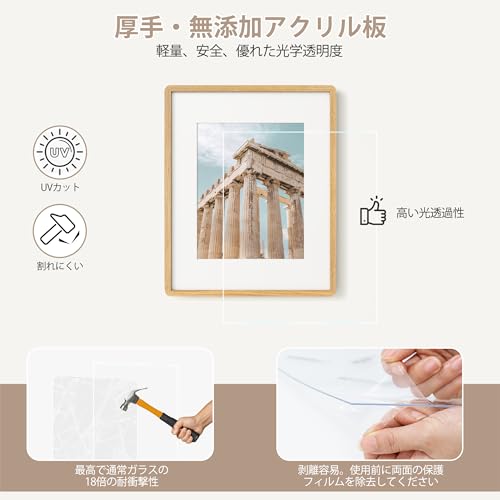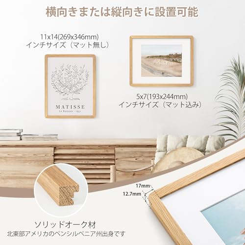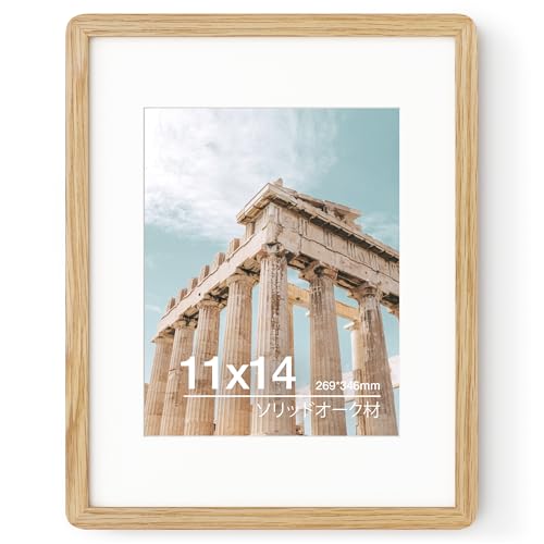 11x14 ソリッドオーク木製フォトフレーム|8x10用マット付き|ポスター・写真対応|プレキシガラス・吊り下げ金具付属|ナチュラルオーク (1個入り)