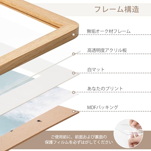 A3サイズ オーク無垢材 フォトフレーム A4サイズ用マット・強化ガラス・吊り下げ金具一式付属 ナチュラルオーク (1個)