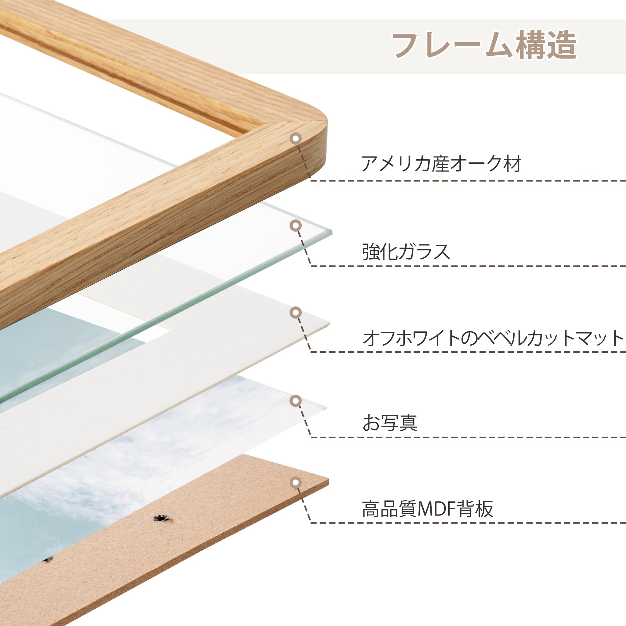 A2サイズ オーク無垢材 ポスターフレーム A3サイズ用マット・強化ガラス・吊り下げ金具一式付属 ナチュラルオーク (1個)