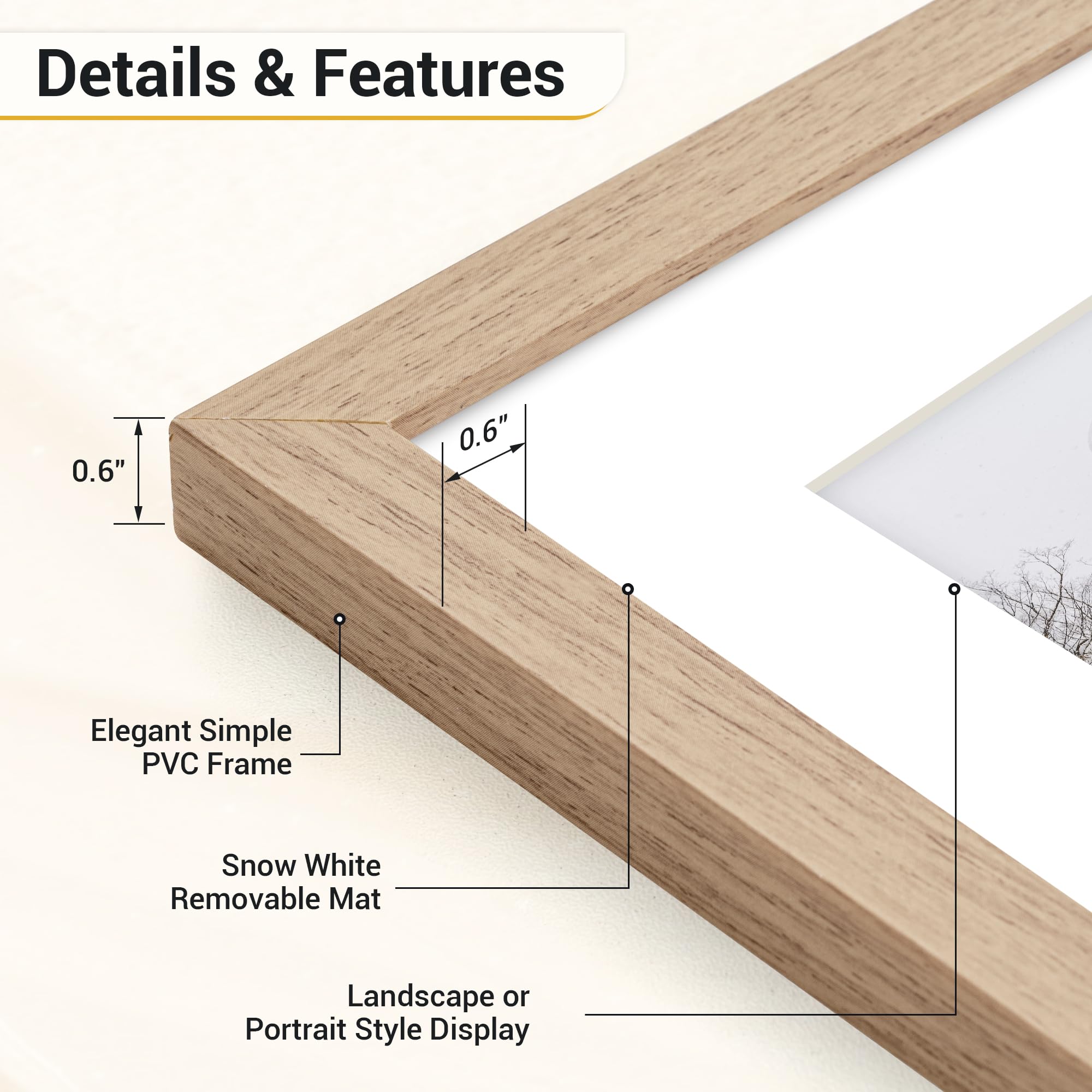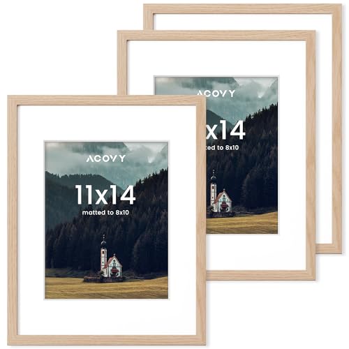 Acovy 11x14インチ 写真フレーム 11x14インチ 壁用フレーム 11x14インチ 写真フレーム マット付き 8x10インチ 11x14インチ 写真フレーム 高解像度プレキシガラス(オーク材 3個パック)