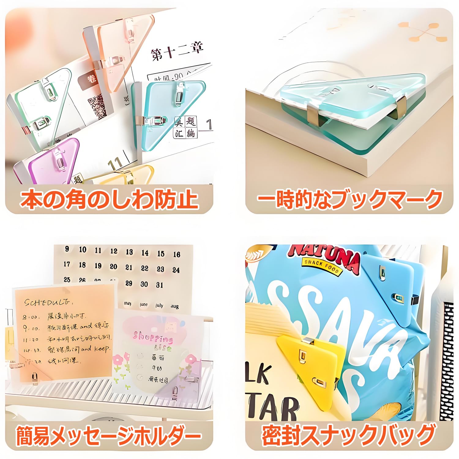 コナークリップ(24枚入)三角クリップ 三角ブックコーナークリップ 本の角の保護 紙を傷つけません コーナークリップ 収納ブッククリップ 本クリップ 三角クリップ 本用 紙クリップ 紙を整理 ブックク整理紙
