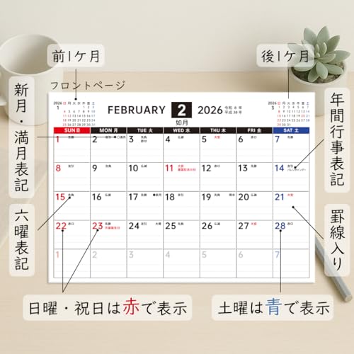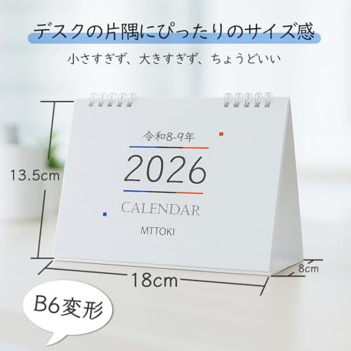 MTTOKI 2026年 卓上カレンダー 日曜始まり 4月始まり 【特典シール付き】 2月始まり 六曜表記 年表付き カレンダー 書きやすい 紙製 スケジュール管理 家庭用 オフィス用 コンパクト シンプル 新年ギフト プレゼント B6変形 1部