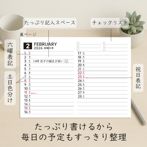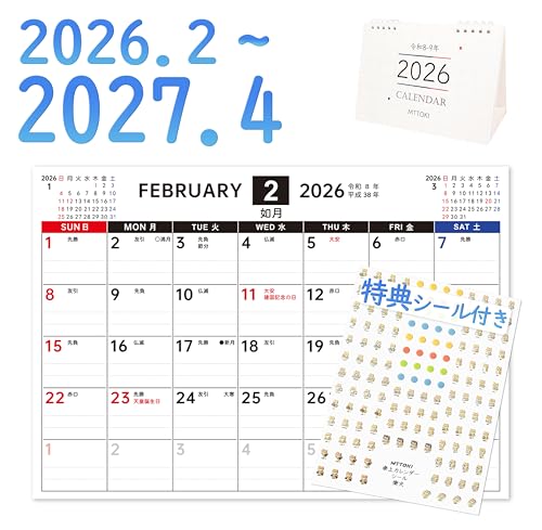 MTTOKI 2026年 卓上カレンダー 日曜始まり 4月始まり 【特典シール付き】 2月始まり 六曜表記 年表付き カレンダー 書きやすい 紙製 スケジュール管理 家庭用 オフィス用 コンパクト シンプル 新年ギフト プレゼント B6変形 2部