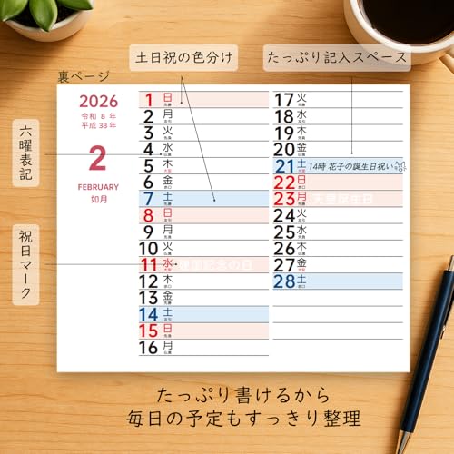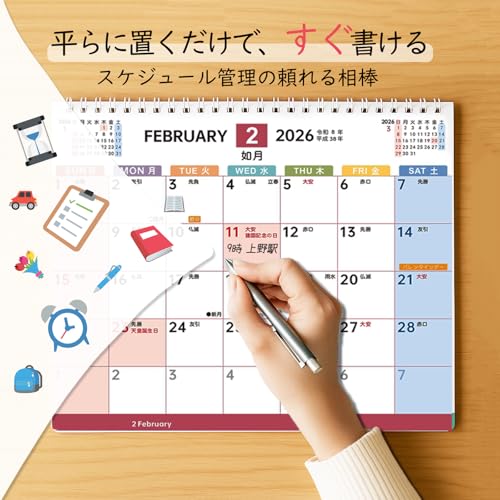 MTTOKI 2026年 卓上カレンダー 日曜始まり 4月始まり 【特典シール付き】 2月始まり 六曜表記 年表付き カレンダー 書きやすい 紙製 スケジュール管理 家庭用 オフィス用 コンパクト シンプル 新年ギフト プレゼント B6変形 2部