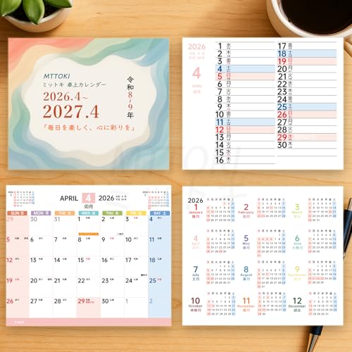 MTTOKI 2026年 卓上カレンダー 日曜始まり 4月始まり 【特典シール付き】 2月始まり 六曜表記 年表付き カレンダー 書きやすい 紙製 スケジュール管理 家庭用 オフィス用 コンパクト シンプル 新年ギフト プレゼント B6変形 4部