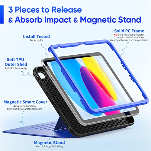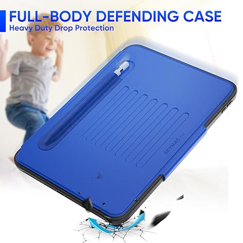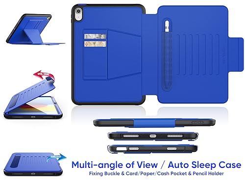 SEYMAC stock iPad(A16) 第11世代11インチ/第10世代10.9インチ専用耐衝撃ケース 多角度横置き調節 オートスリープ ペン収納 カード収納 強磁力全面保護カバー(ブルー)