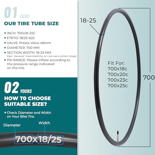 MetersGod 2本,700x18c/20c/23c/25c 自転車チューブ,700x18-25c 自転車タイヤに対応,仏式バルブ48mm,ブチルゴム,適用ロードバイク、クロスバイク、シティバイク,MGN037