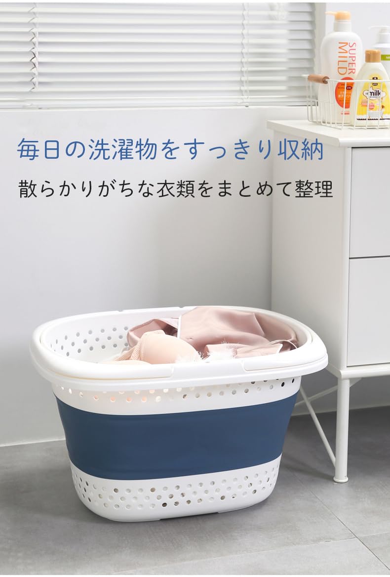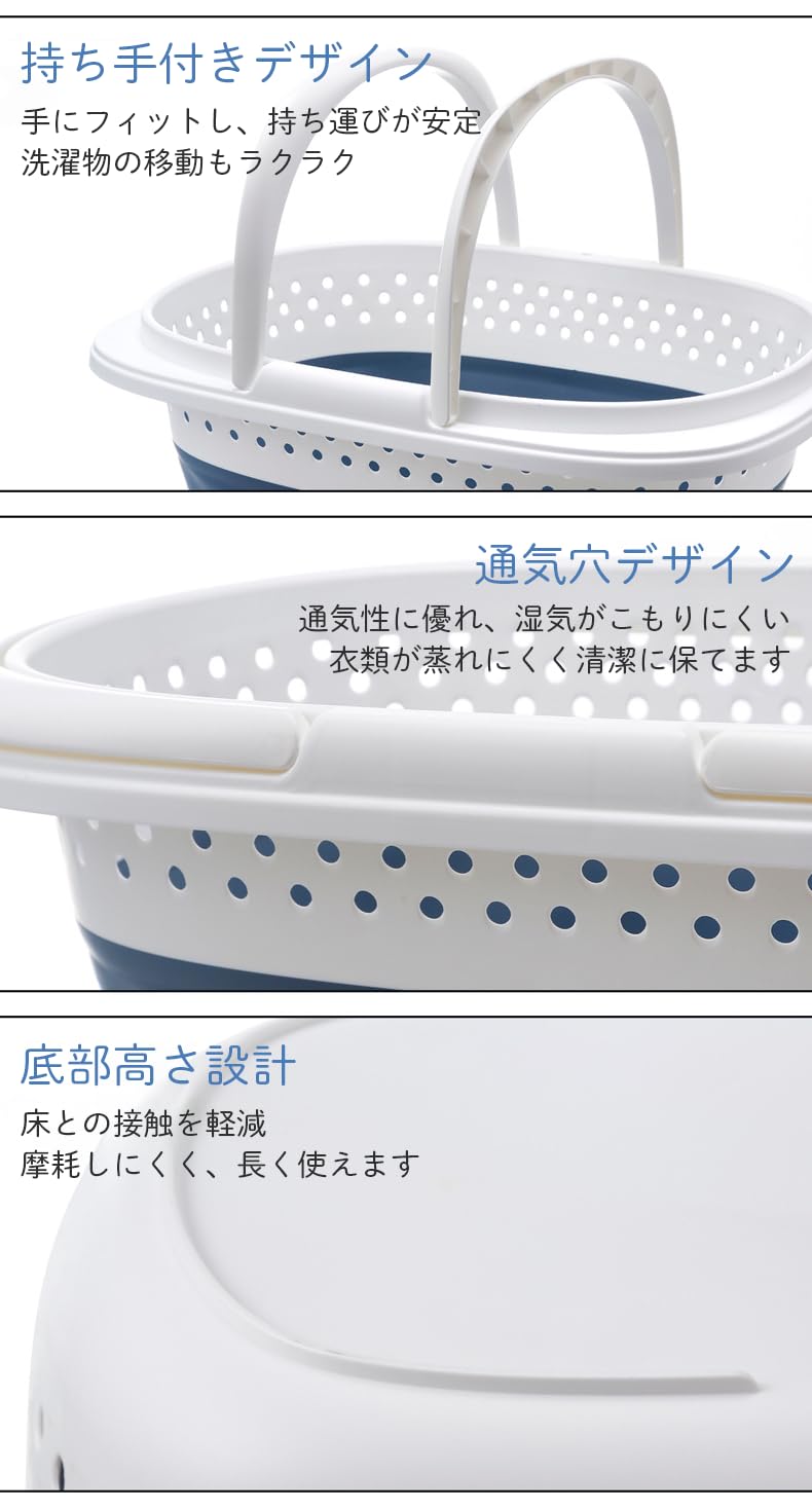 Gorocking 折りたたみ ランドリーバスケット 16L/28L ランドリー収納 洗濯 (ブルー, 16L)