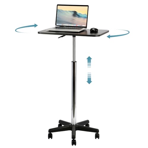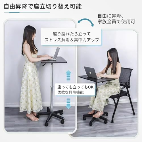 Aikenn 昇降デスク 無段階昇降 スタンディングデスク ノートpcデスク サイドテーブル ミニテーブル モバイルテーブル テレワーク 演台 昇降式 キャスター付 ガス圧 ノートパソコンテーブル リフトテーブル 幅60cm×奥行39cm 高さ調整 耐荷重25kg (ブラック, 59cm〜80cm)