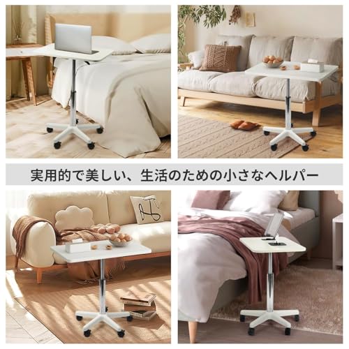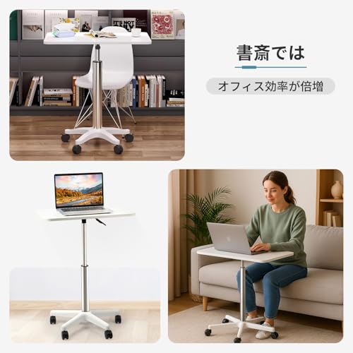 Aikenn 昇降デスク 無段階昇降 スタンディングデスク ノートpcデスク サイドテーブル ミニテーブル モバイルテーブル テレワーク 演台 昇降式 キャスター付 ガス圧 ノートパソコンテーブル リフトテーブル オフィステーブル 幅60cm×奥行39cm 高さ調整 耐荷重25kg (ホワイト, 85~107cm)