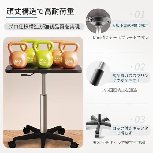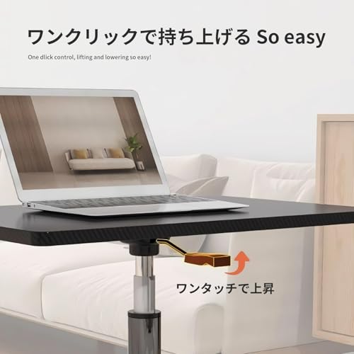 UNITRIP 昇降デスク モバイルテーブル スタンディングデスク pcデスク PCテーブル 無段階昇降 テレワーク 昇降式 キャスター付 ガス圧 リフトテーブル スムーズかんたん昇降 幅60cm×奥行39cm 高さ調整70cm〜95cm 耐荷重25kg (ブラック)