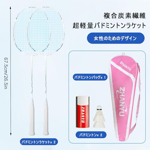 バトミントンセット バドミントン ラケット 軽量炭素繊維 2つのバドミントンラケットと2つのバドミントンと1つのバッグを含み、 アウトドアや家族旅行に適しています