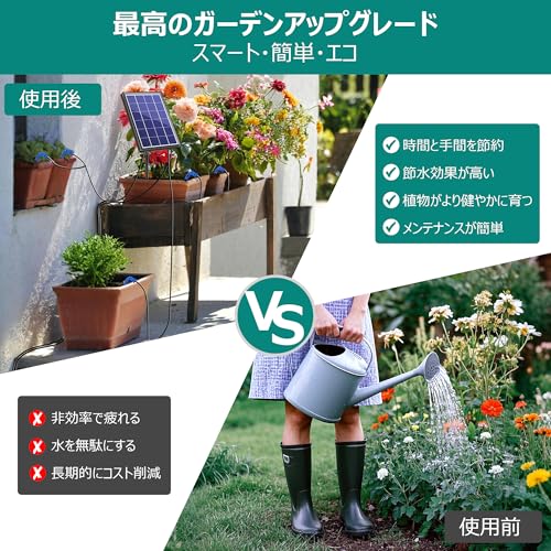 NFESOLAR ソーラー自動散水キット 太陽光で動く、15鉢まで同時に水やり可能な完全ワイヤレス散水システム