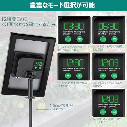 Moongiantgo 散水タイマー 噴霧器セット 出水2口 WiFi機能 アプリ接続 ソーラーパネル付 簡単設定 曜日別設定可能 雨センサー付 水やり器 噴霧器 充電式 蛇口接続 散水開始時刻設定可能 自動噴霧加湿セット 手動散水機能 自動散水 お庭・ベランダ・花壇・鉢植え・畑用 家庭菜園 家畜の夏バテ 園芸 庭 ガーデニング 自動散水機