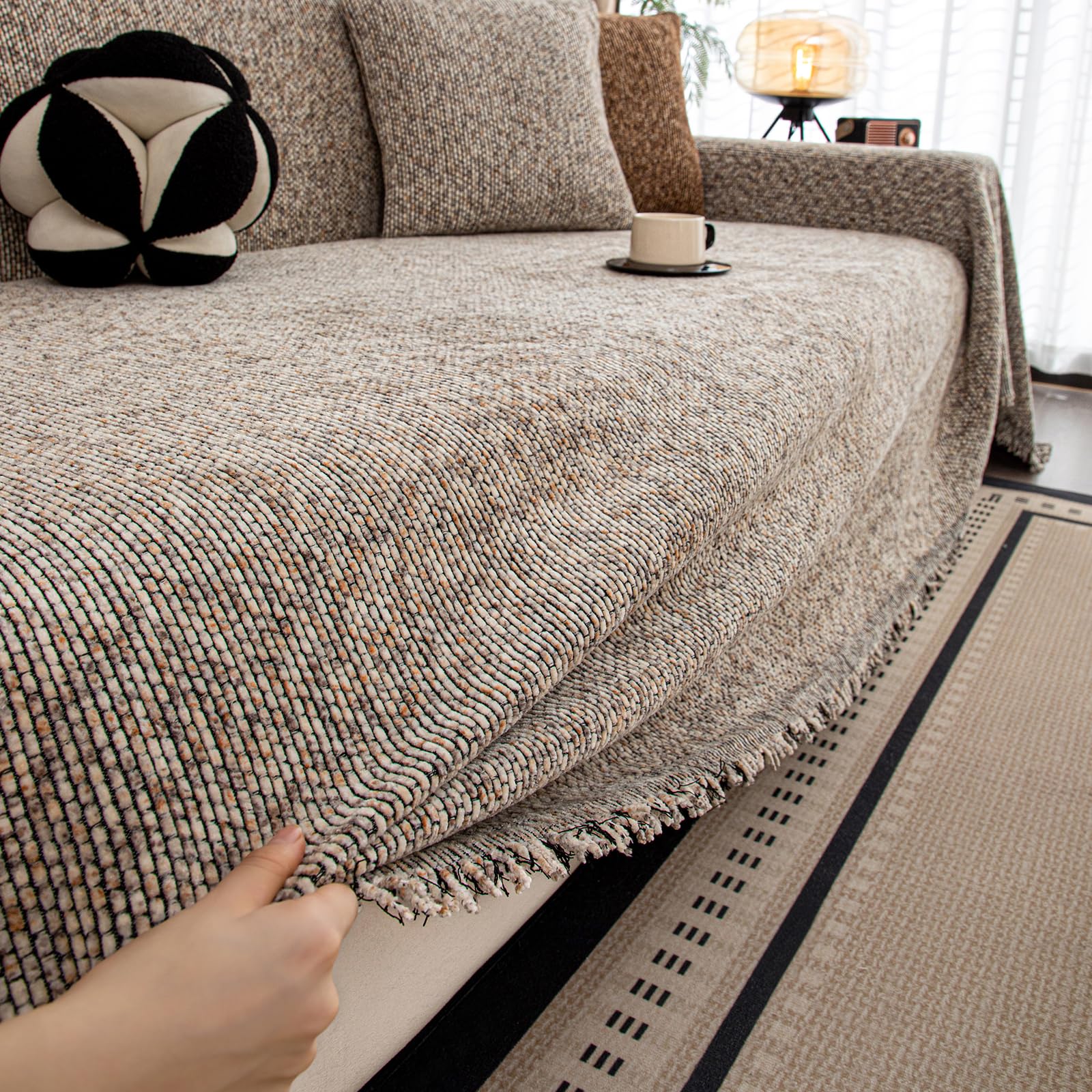 HomeFirst 北欧風 マルチカバー 長方形 大判 マルチカバーソファー 180*300cm ソファーカバー 2 3 人掛け シェニール おしゃれ ブランケットフリンジ付き ベッドカバー カウチ ベッドカバー 毛布 無地 テーブルクロス 柔らかく軽く 吸湿 通気 速乾 洗える 四季通用