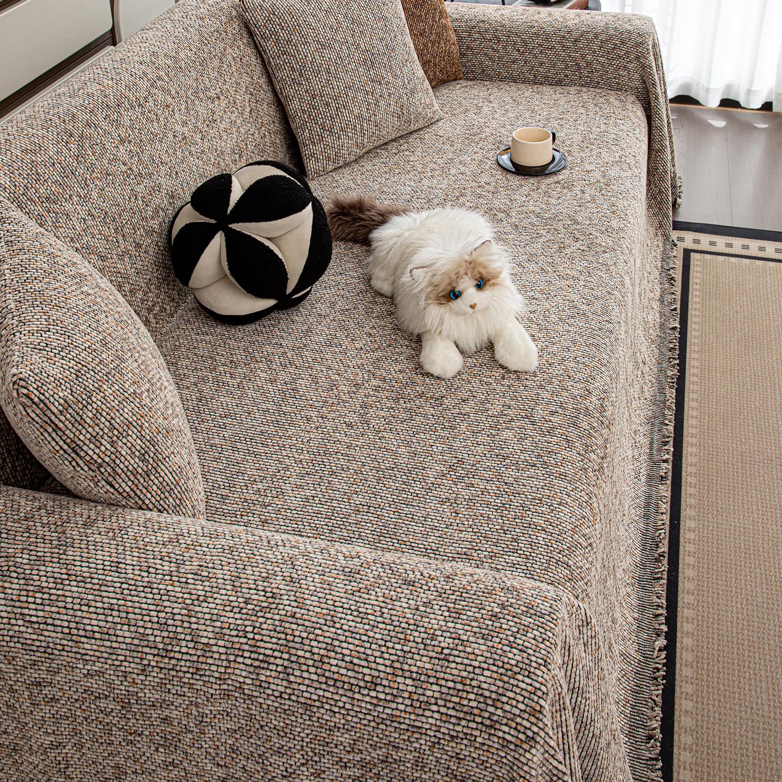通気性・北欧風 マルチカバー 多彩な・色織り ソファカバー 幅約180cm,長さ約260cm, 厚手 ソファプロテクター フリンジ付き 高密度 長持ちソファスロー チェック柄 ふんわり肌ざわり・洗濯機対応 ソファーベッドカバー リビング用・ソファ用