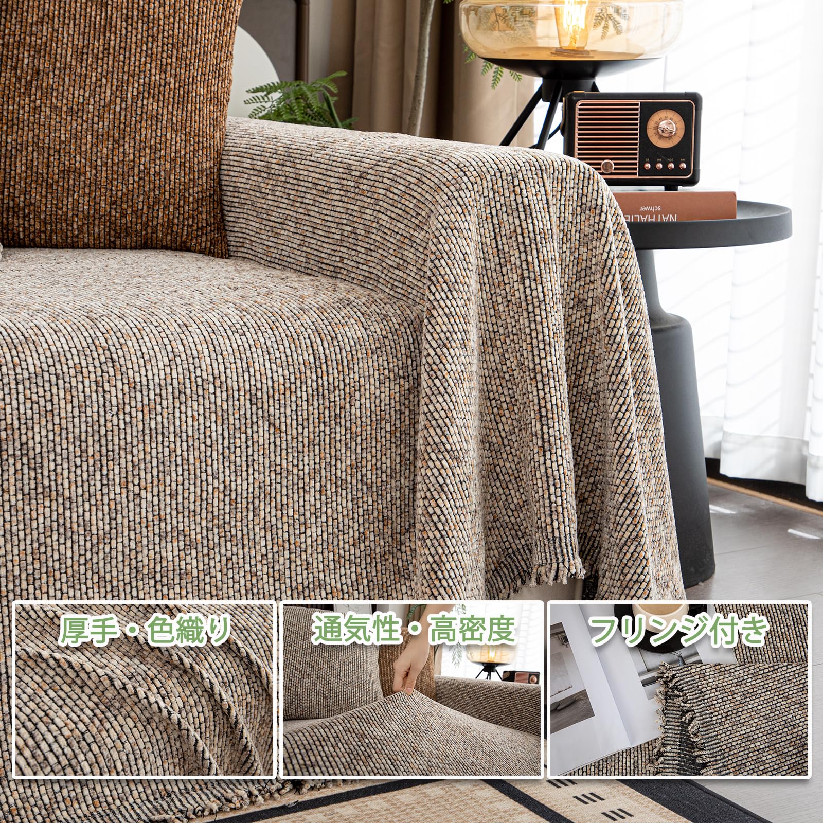 厚手 色織り ソファカバー 180*180cm おしゃれ ブランケット フリンジ付き 高密度 長持ちマルチカバー 北欧風・通気性 ふんわり肌ざわり・洗濯機対応 ソファーベッドカバー リビング用・ソファ用