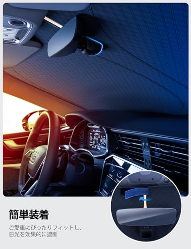 【2025新版】MLOQI 傘型サンシェード フロントガラス シェード 傘式 UVカット 日よけ 日差しカット 車用サンシェード サンシェード 車 フロント 傘型 シンシェード 軽自動車 フロント ガラス用 カーサンシェード遮光 遮熱 UVカット紫外線遮蔽 内装劣化防止 内装パーツ 収納ポーチ付き(140*79CM)