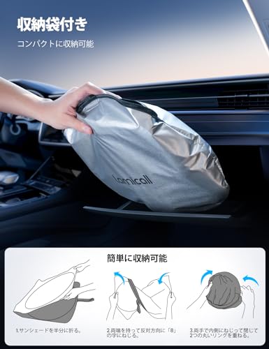 【ガラス繊維製強化傘骨】 2023 Lamicall 傘式 サンシェード 車 フロント: 車サンシェード 日除け, クルマ フロントサンシェード, 車用傘式サンシェード, 折り畳み式 車用サンシェード, 断熱, カー用品, 遮光, 遮熱, uvカット, 紫外線遮蔽, 傘, 傘型, カーシェイド, さんしえーど, 擦り傷防止, 断熱素材, 暑さ対策, 頑丈, 収納ポーチ付き (135*75CM)