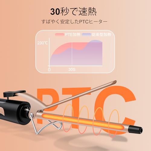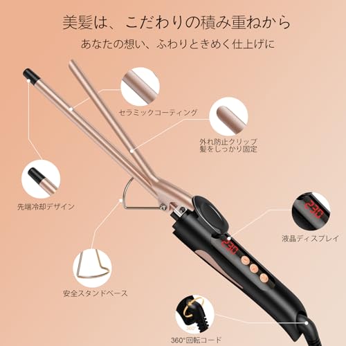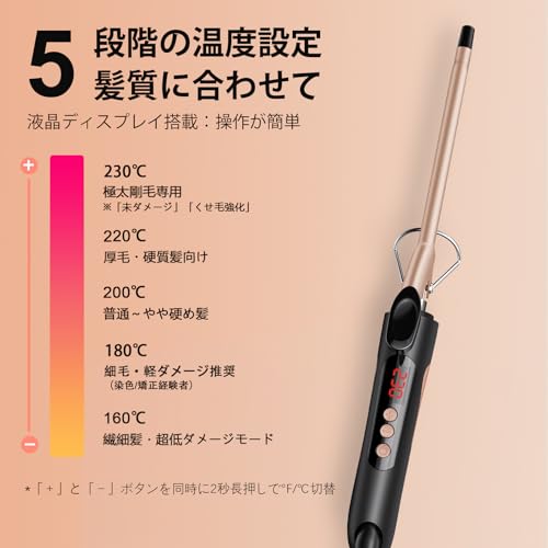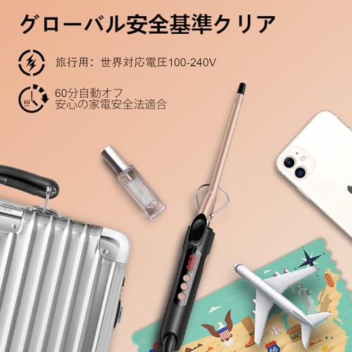 SAOSA ヘアアイロン カール 9mm コテ カールアイロン 極細 セラミック プロ仕様 急速加熱 60℃-230℃ 自動電源OFF 男女兼用 海外対応