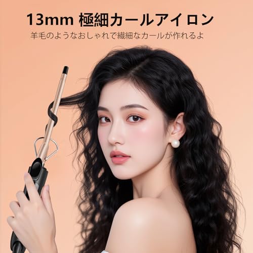 MELYDO 13mm ヘアアイロン 極細コテ 小型電気石セラミックヘアアイロン 160℃~230℃調節可能 30秒急速加熱 自動電源OFF 男女兼用 海外対応 ロングヘア対応 プロ仕様